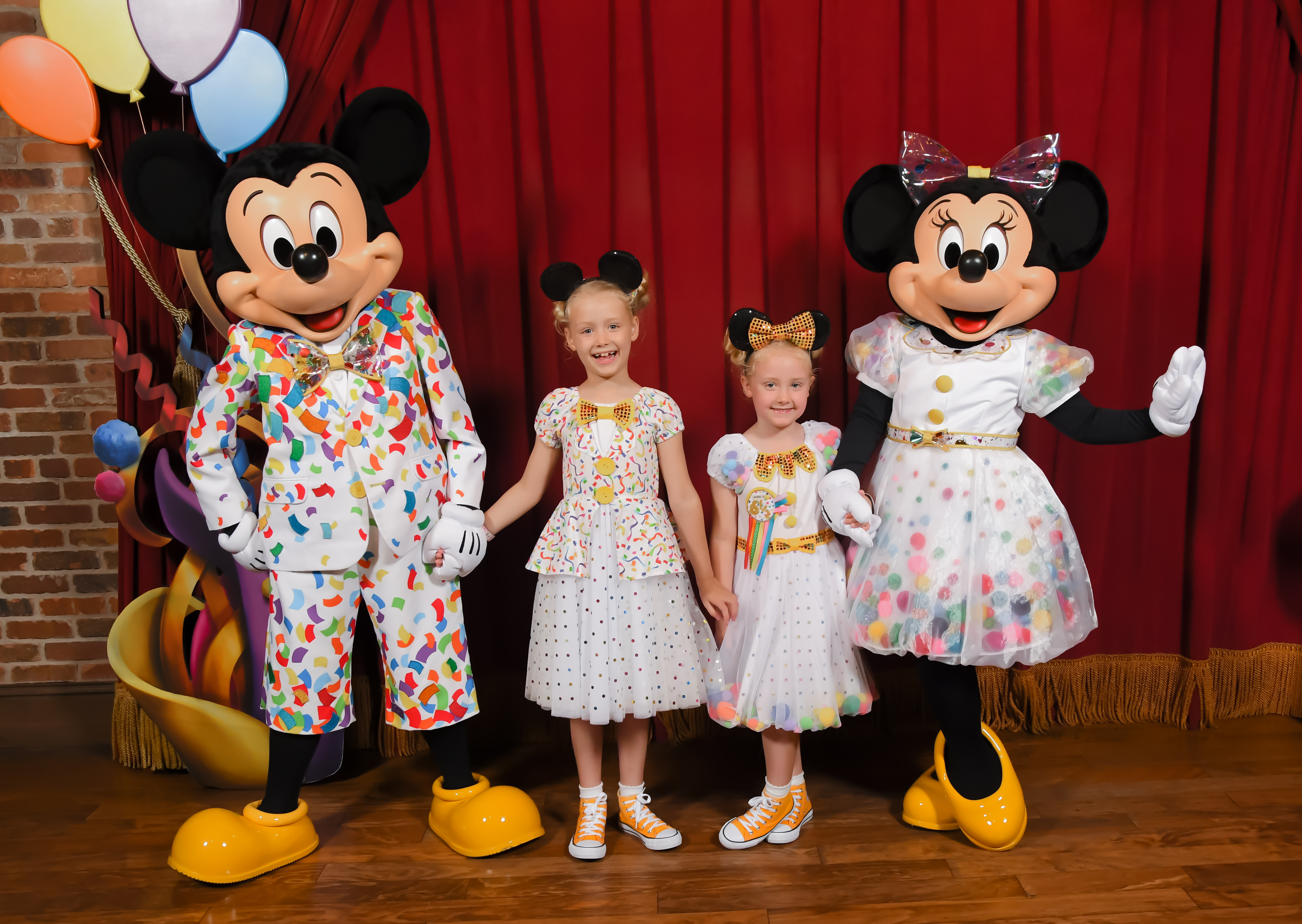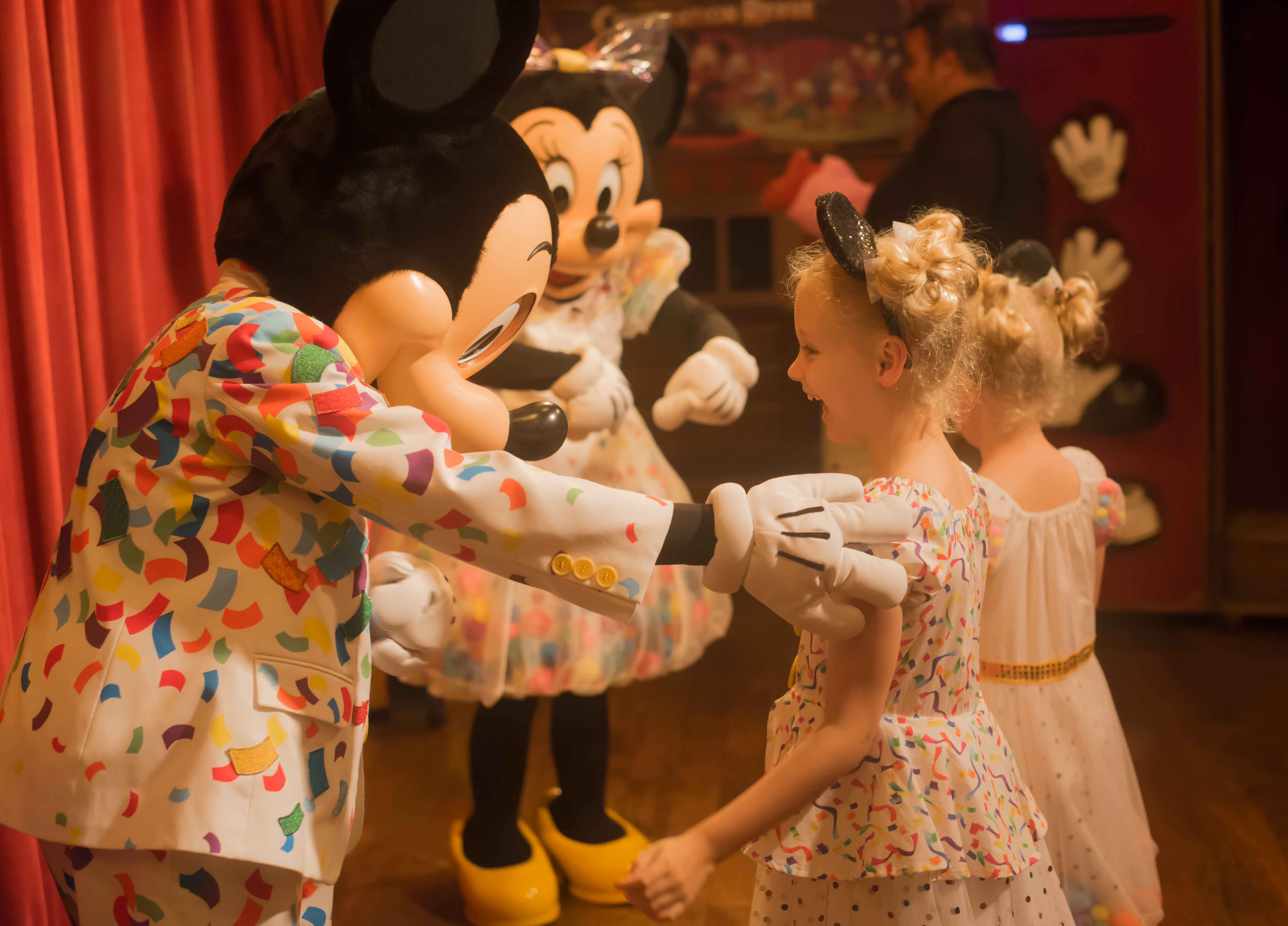 We then set off for our Fast Pass to meet Mickey & Minnie who are currently appearing together in their birthday celebration outfits (if you want to meet them I strongly suggest getting a fast pass as the regular line didn’t drop below 50 minutes all day and that was in a quiet park).. They were great with all the people meeting them and spent ages with each family, which I always think makes it extra special. The girls always lose the ability to speak when they meet characters and this was no exception so poor old Mickey really had to work hard, but they loved it.