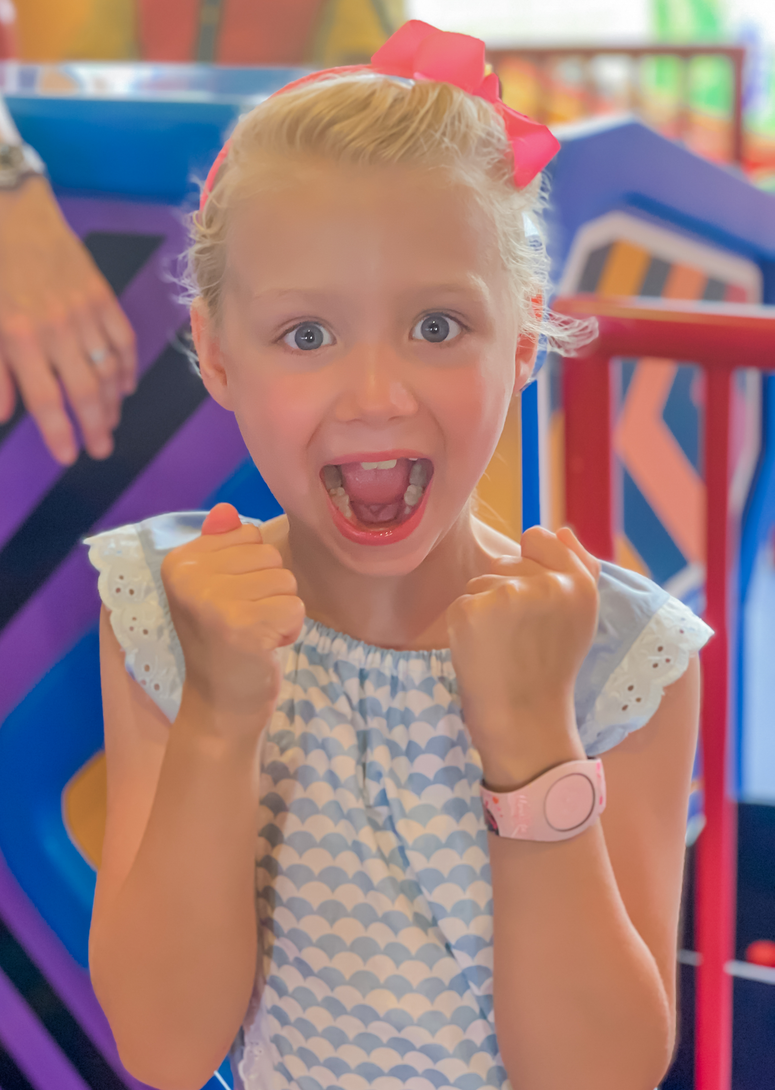 The plan was to go to Hollywood Studios for a bit of a mooch around. After a failed attempt to brush Polly’s hair I realised that it had a consistency similar to that of the Scarecrow from The Wizard of Oz, so decided on an impromptu shower/ hair wash as the only course of action. This made us later than anticipated (especially as the girls were making up a new secret handshake which involved slapping bare bum cheeks together!) but we had no firm plans other than a Slinky fast pass, so wasn’t a big problem. We arrived at the bus stop just as the Hollywood Studios bus was pulling in (win) but got on to realise someone had a serious need for a shower (big loss!) and spent the whole journey mouth breathing!! Good job it’s a short journey!