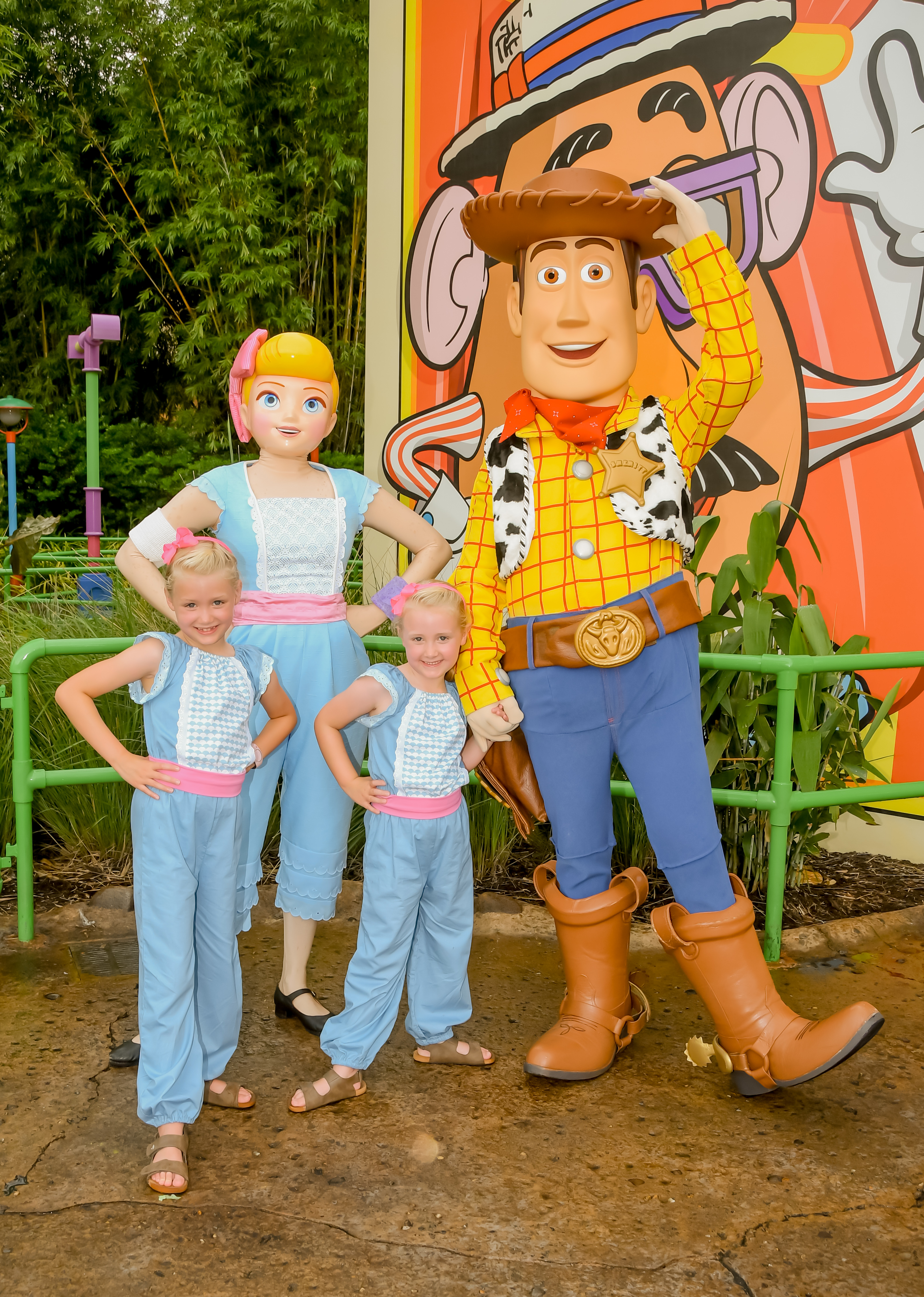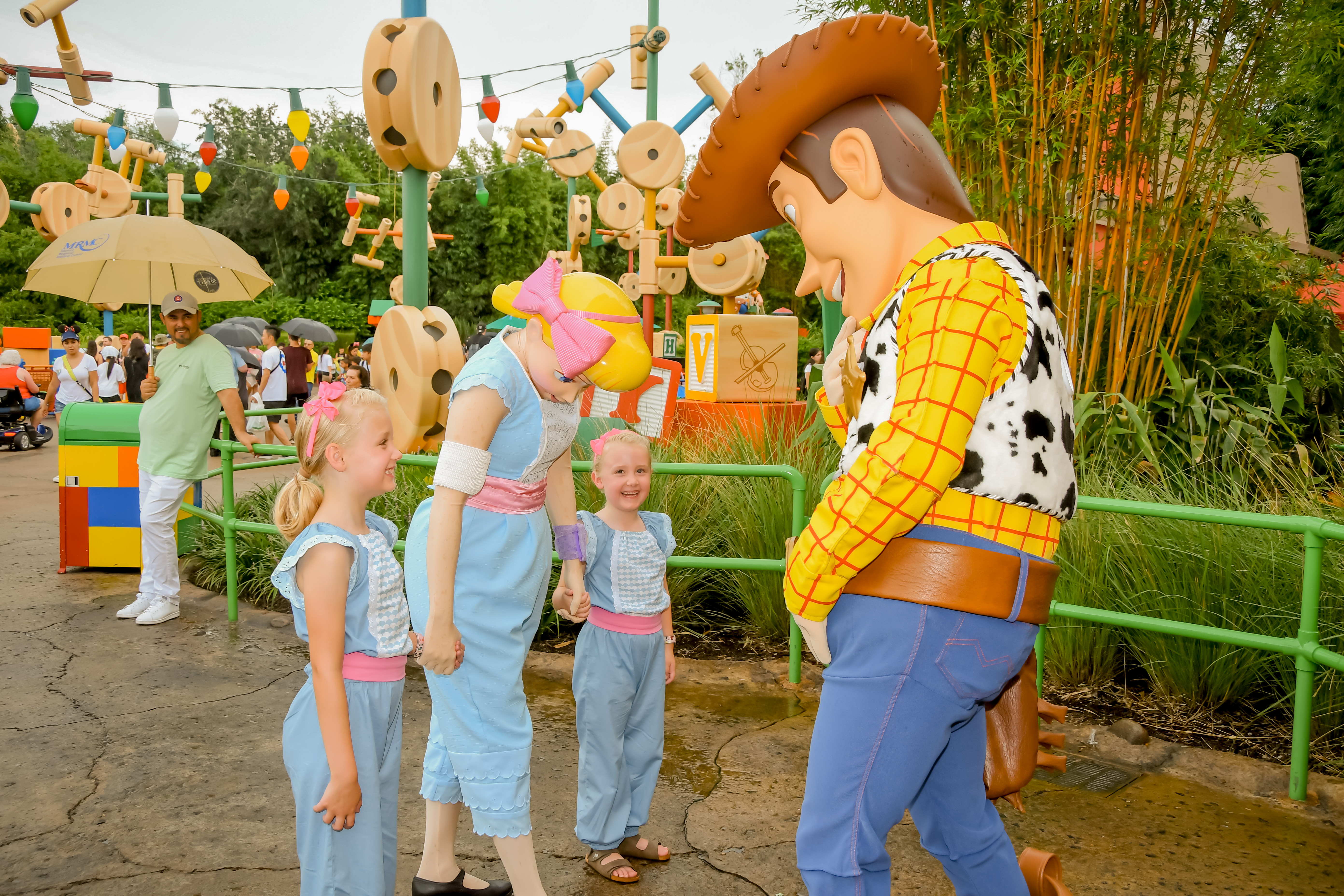 We decided to join the queue to meet Woody and Bo Peep as the girls really wanted to see Bo. Now, the queue was ridiculously long as always but this time we had the added worry that if it rained too hard the characters would have to leave. We only had a certain amount before our fast pass and the girls kept their fingers crossed through the whole (long, hot) queue. It started raining quite heavily when we were about 3 families from the front, but luck was on our side and we managed to see them before they had to go into the dry. They were on great form and really interacting with everyone. Woody played a game where he pretended he couldn’t guess who the real Bo Peep was! The girls couldn’t stop giggling!