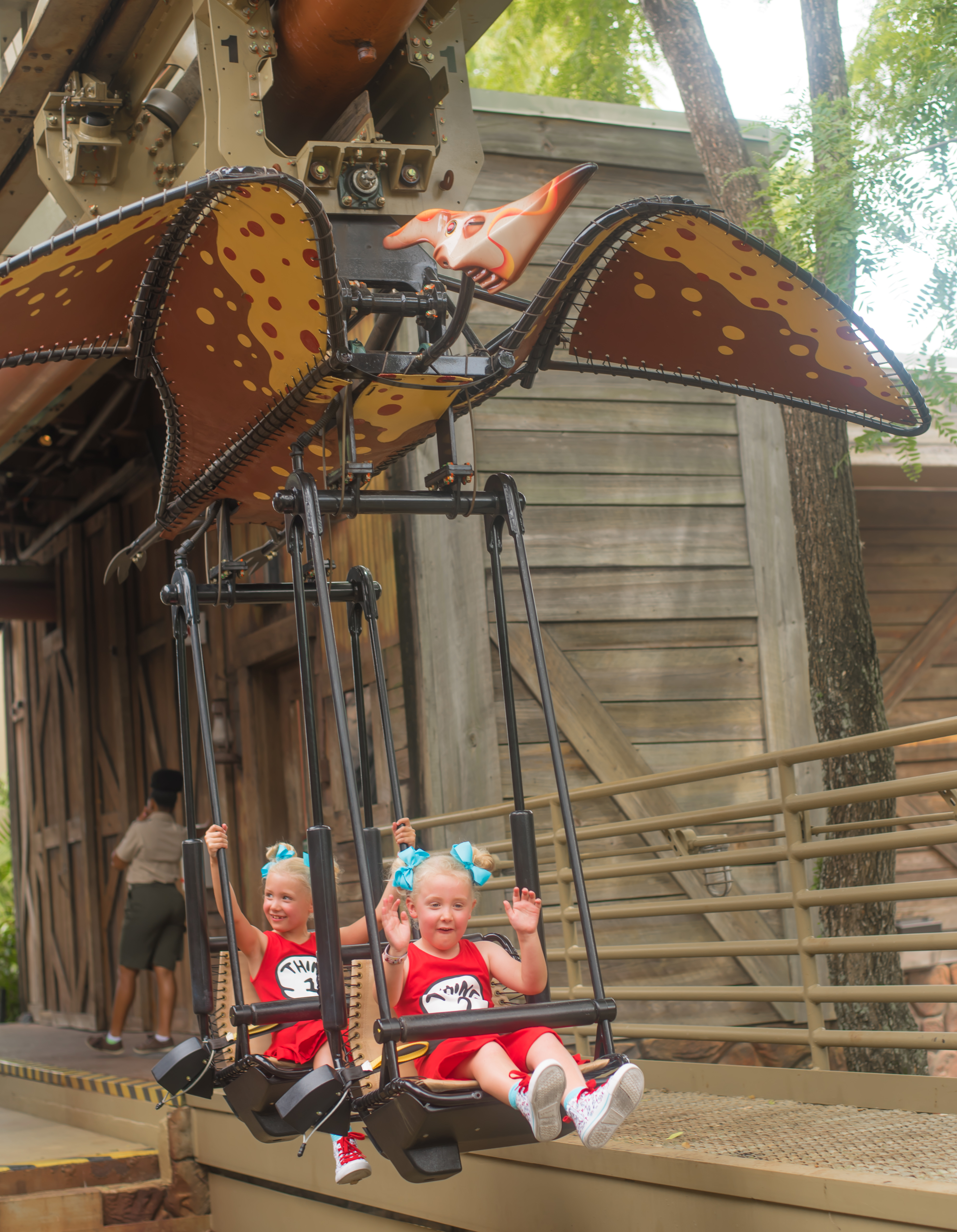 After that we decided to head to the Jurassic Park area as they wanted to go and play in Camp Jurassic (a huge play area with caves, nets, slides etc) and go on the Pteranodon Flyers as they’ve been desperate to sit together on a bigger ride all holiday but until Winnie turns 7 it’s not happening, so this was perfect. They had a virtual queue system in place, so we picked up a return time ticket for 45 minutes later.