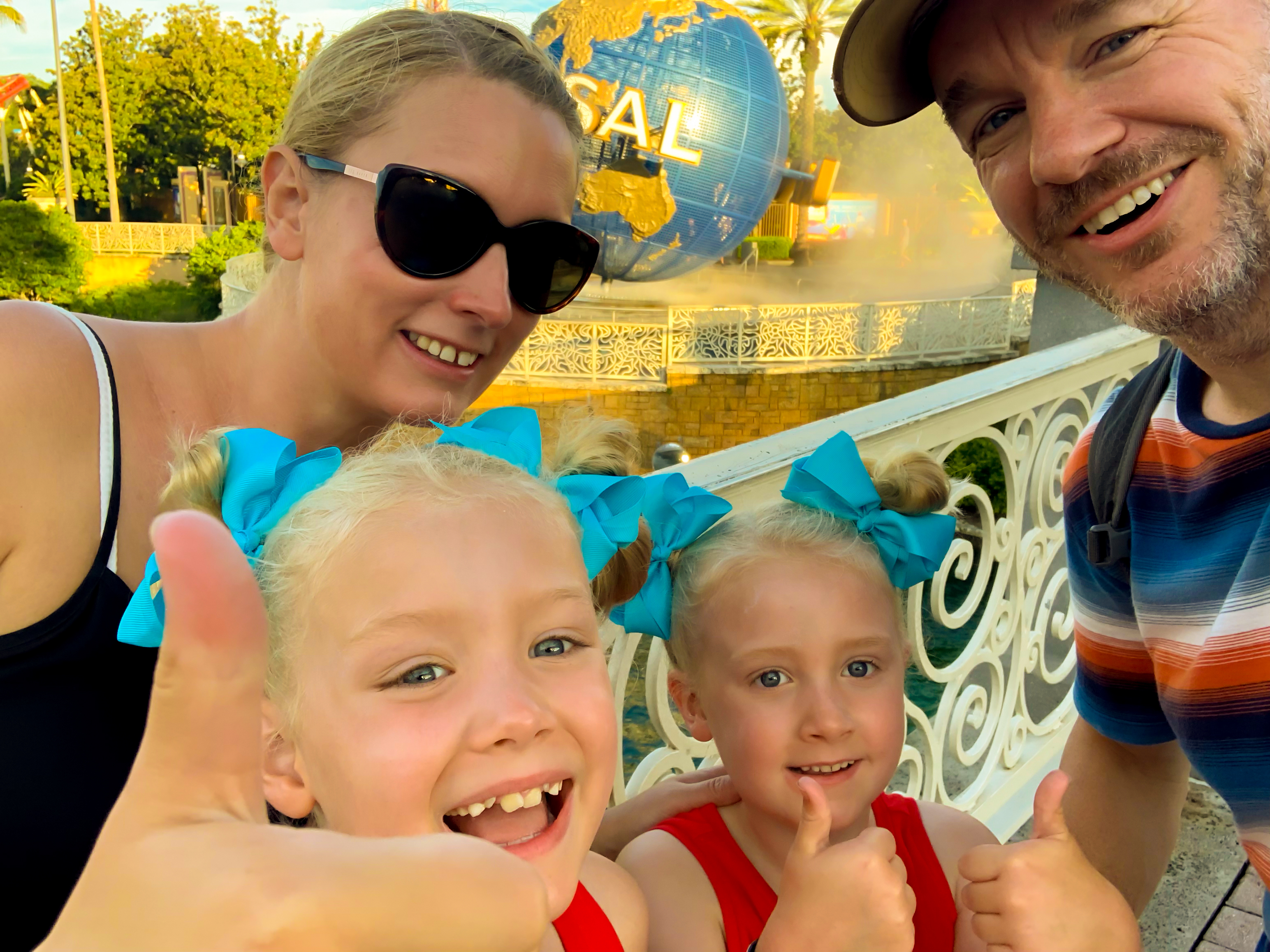 As annual pass holders you get into one park early. At the minutes it’s Universal Studios so we got a Lyft there (with the trusty bubble bum booster seats!) and arrived by 7.35am. By the time we got to the park entrance it was 7.50am and as soon as we got into a turnstile queue, they started letting people in. Surprisingly Steve had nipped to the toilet and as we edged ever closer to the entrance he was still nowhere in sight. Right at the last minute he sauntered just in time to join us before we went into the park. Winnie pointed out that he should have gone before we left the hotel. I pointed out that he did!!!! There’s very little open before 9am but the plan was to do Minions, explore Diagon Alley then get the Hogwarts Express over to Islands of Adventure as soon as it started running to get a head start on the crowd there. We got on Minions immediately. Now I know that I am horrific with simulators that aren’t fully immersive and as this is just a screen you watch and jerk around in time with, I spent the whole ride looking at the floor to avoid motion sickness for the next hour. Unfortunately, Polly did not do the same and it seems that simulator sickness is another trait that the poor girl has inherited from me (she is a complete mini me in every way other than her feet…Winnie got that particular characteristic of mine hence ‘team brick-feet’ name we have!) Polly got off the ride and was whiter than Jack Skellington, even though we’d all taken motion sickness tablets. We gave her some water, but she still felt awful. We tried going to the toilet, sitting in a cool place (pure coincidence that it was Starbucks and Steve could grab a coffee!) but nothing worked. She asked to walk around so we went to Diagon Alley (which looks amazing incidentally! So much amazing detail!) and there she took a turn for the worse.