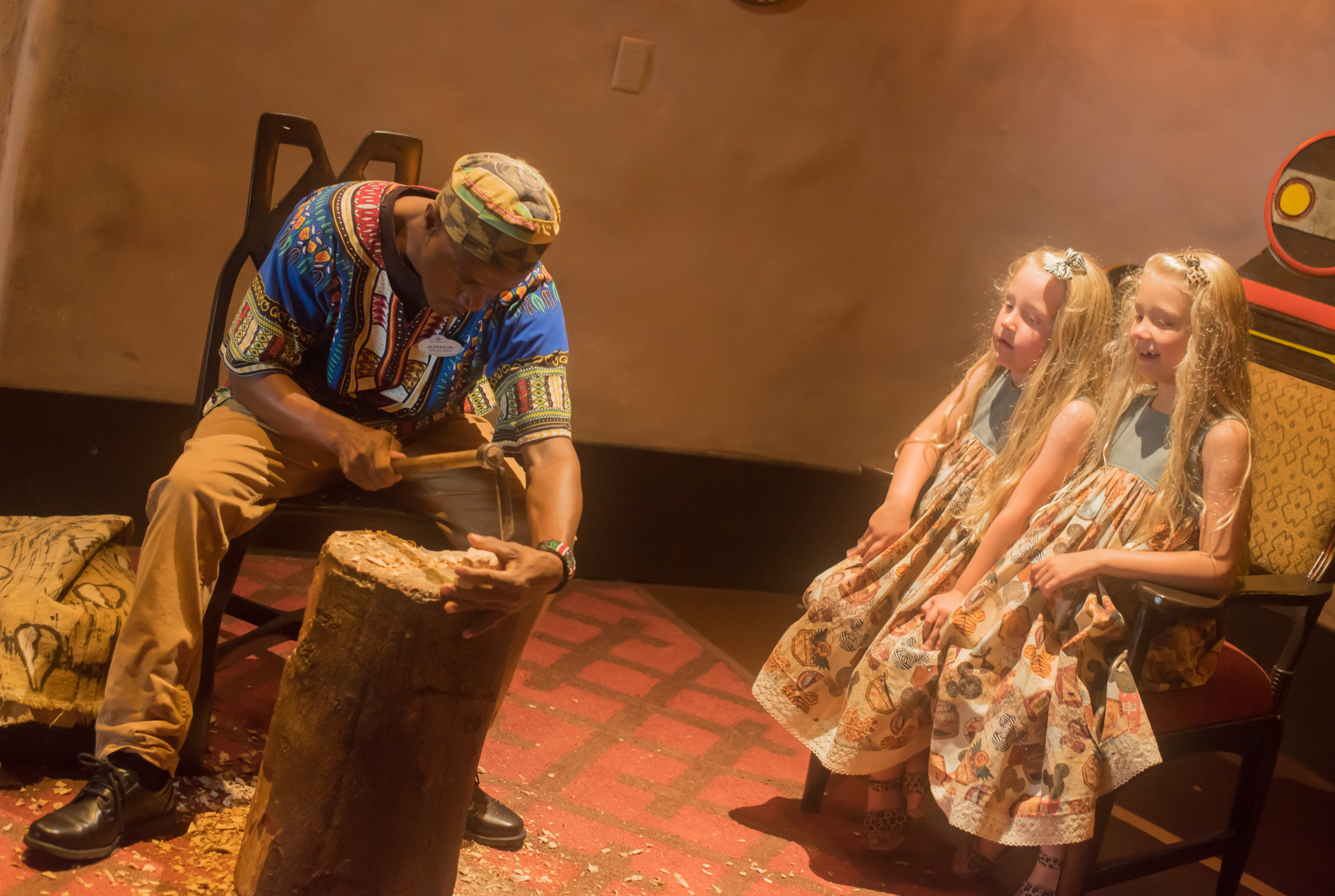 We walked back to Jambo House and watched one of the cultural representatives carving wood in the lobby. There really is always something going off here. It’s fabulous.