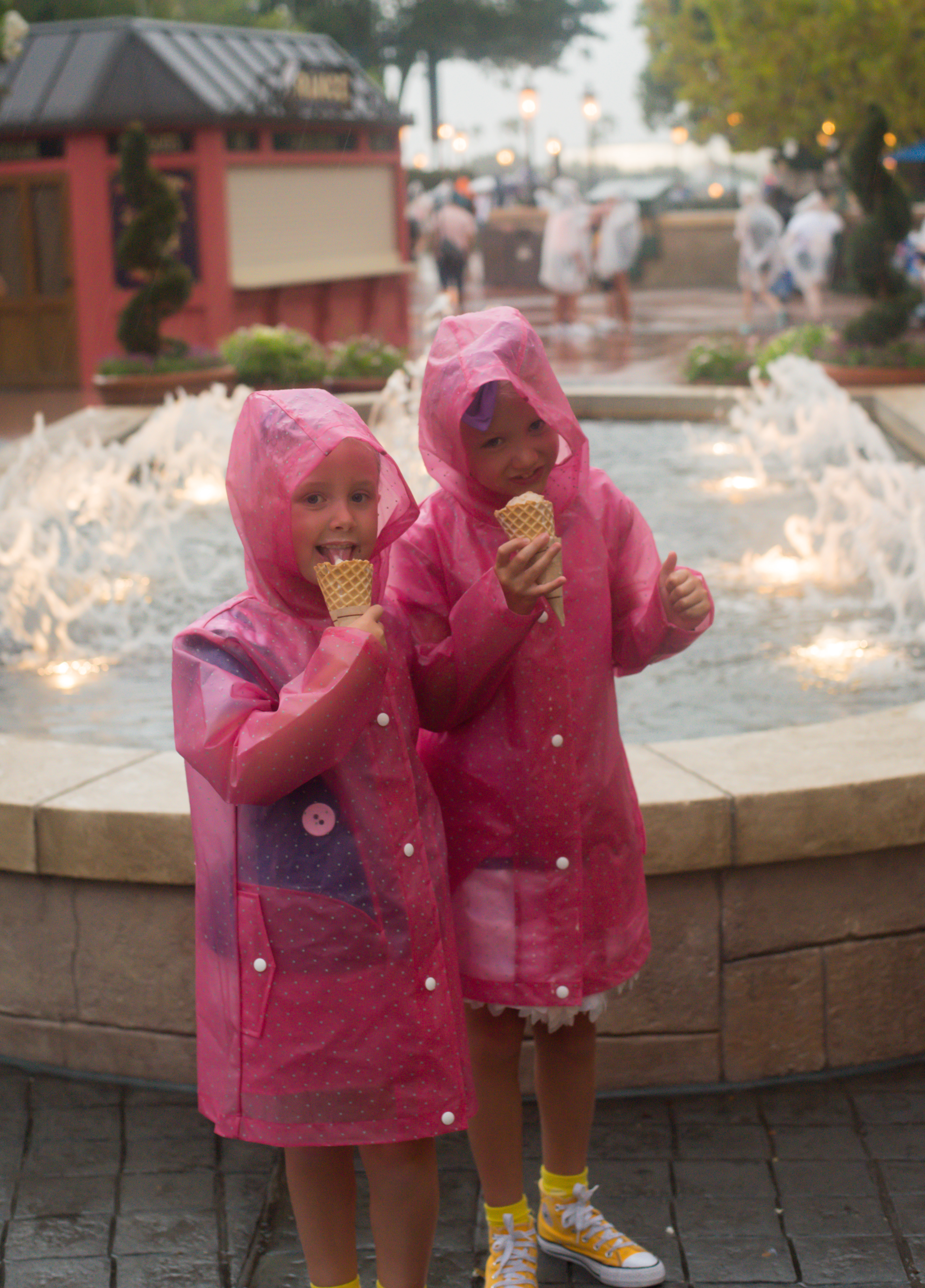 EPcot was really quiet today so we got our fish and chips quickly and sat down with no wait for a table. That may well have been because 2 minutes later it started to pour with rain. Still, with some strategic positioning of chairs we managed to remain largely dry.
