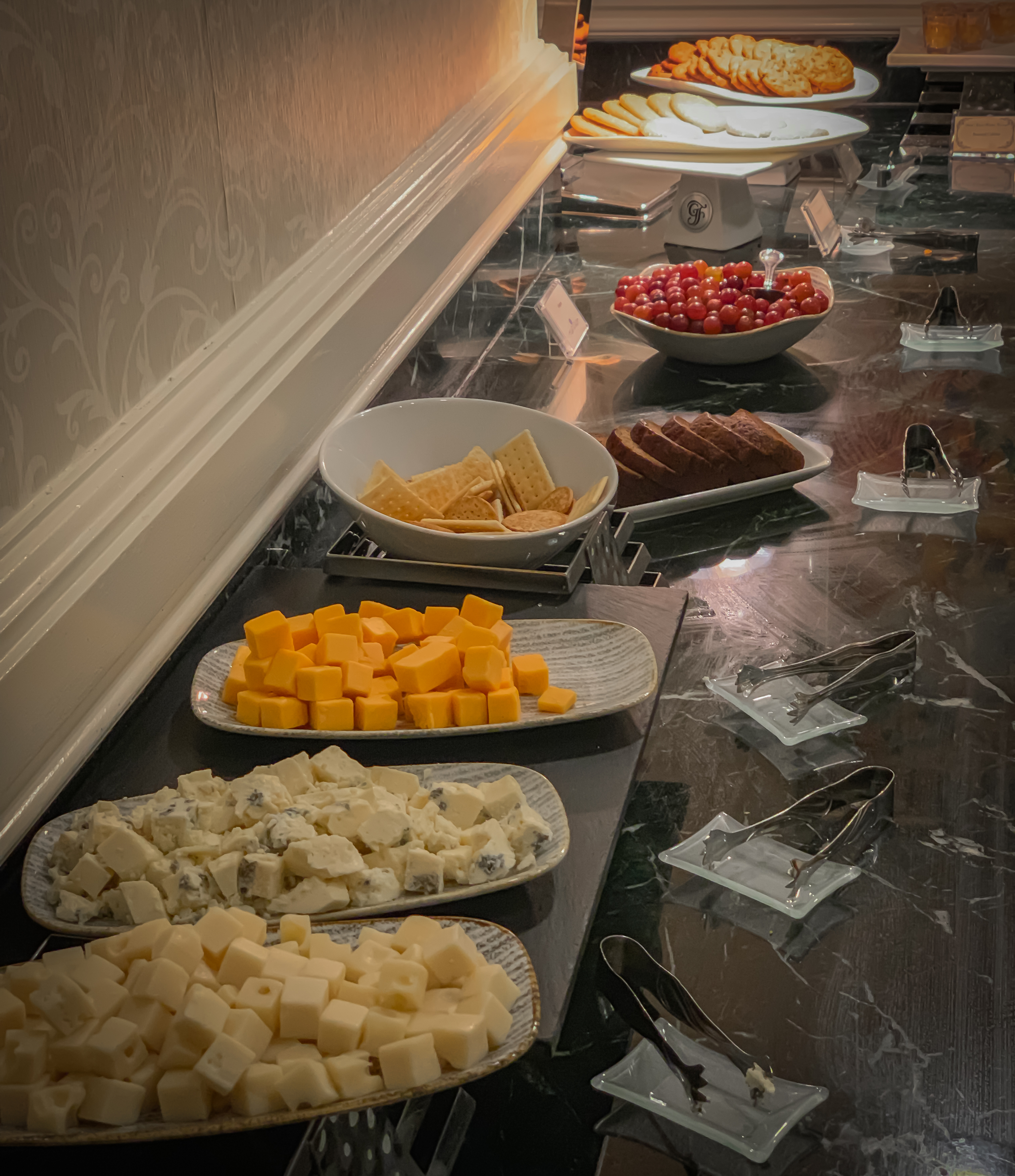 In club level you get different food/ drinks put out during the day. The breakfast is pretty much a full continental breakfast with cereal, fruit, pastries and muffins, bread, bagels, cheese, ham, juices etc (I felt daft taking photos but believe me, it was a good spread!) There were also a few warm items (I had a mini quiche type thing that was lovely). There was more than enough to fill us up, and enough tables to sit at to eat. We could have taken the food back to the room, but I’d specifically requested a room far away from the atrium so that the noise didn’t disturb the girls (and Steve!!) so it was easier to eat there.