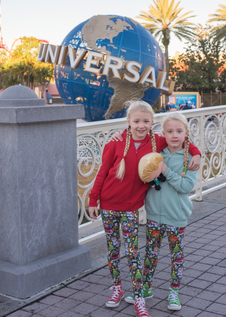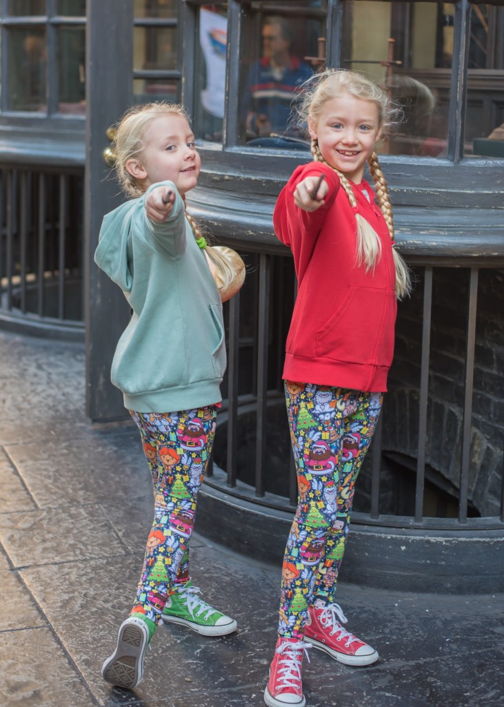 We weren’t sure how the girls would be feeling today, but they woke up set on going to Universal. We made the decision to go (suitably wrapped up in Christmas Harry Potter leggings and lots of layers as it was rather chilly) but just for a wander around as the main thing they wanted to do was buy the interactive wands Santa had promised them.