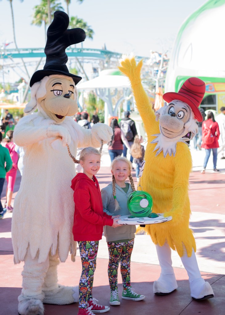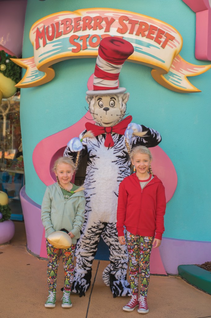 After breakfast we quickly decided spell casting could wait for a future visit as the crowds were even bigger now, and left Hogsmeade. We wandered down to Seuss landing, and happened to meet The Cat in the Hat with no queue.