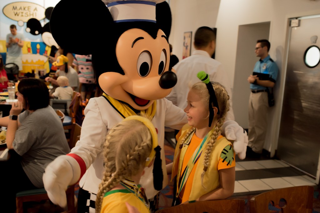 Around 4pm we set off for tea at Chef Mickey’s. Now I hadn’t booked this meal in advance as we wanted to see how we felt after the race, so once it was finished and the girls chose it (It wouldn’t have been choice as in the past we’ve had more bad meals than good meals there, plus it has always been so noisy) but it’s what they asked for as they wanted to meet Pluto & Goofy with their race medals, and after their amazing achievement today it’s the least they deserved. I booked a table. I originally had 5.30pm which was a little bit late, but after checking a few times a 5pm slot came up so that’s what we went with (5pm is the first tea time slot so you usually get fresher, hotter food) Honestly, ADRs are great but don’t stress if you don’t get what you want. I think we’ve only stuck to 2 of the original meals we planned so far!