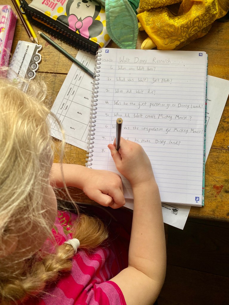 We decided that the afternoons would be for topic work which could be amended easily depending on the mood the girls were in. And most importantly, we decided to base all our English and topic work for the first few weeks at least around the theme of Disney!