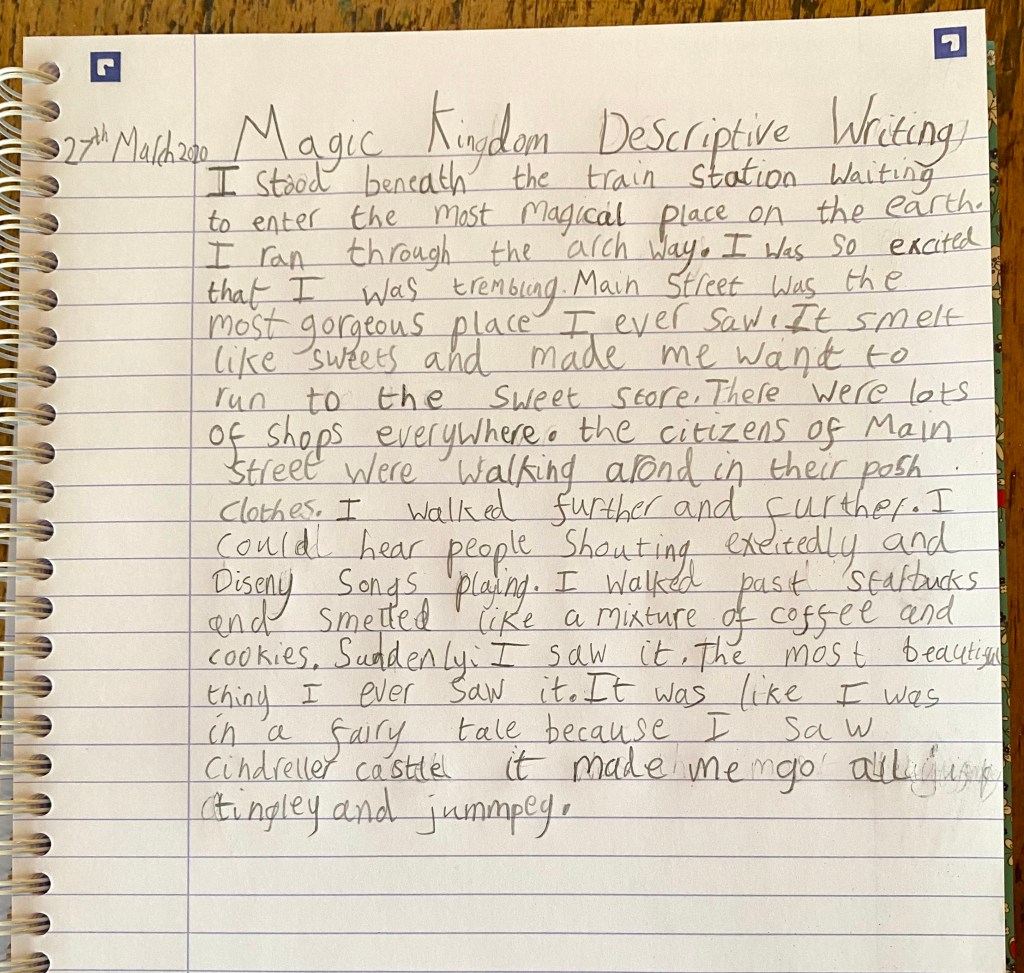 Create a piece of descriptive writing about entering The Magic Kingdom.