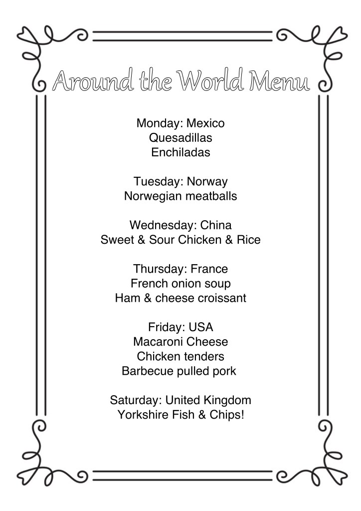 Another thing we’ve tried to do is a different country inspired meal each night. The girls created a menu at the start of the week which made teatime fun!
