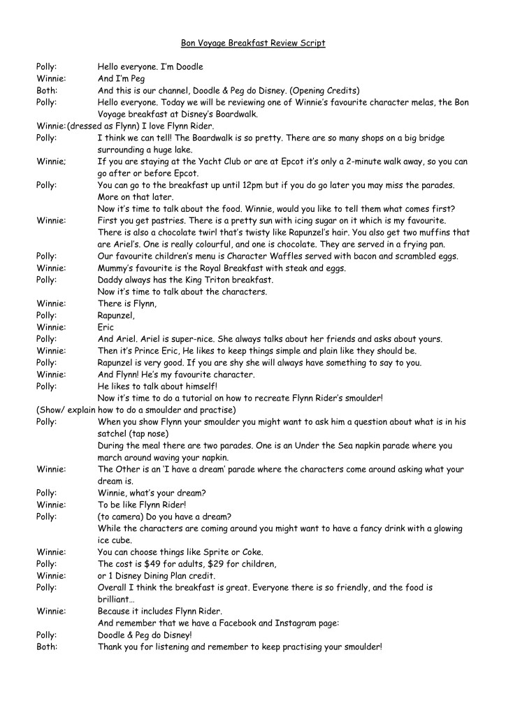 Next, we watched a few YouTube vlogs and reviews and talked about what we liked/ disliked about them. The girls then worked together to create notes for their own Disney review on the Bon Voyage breakfast at Trattoria al Forno on Disney’s Boardwalk.