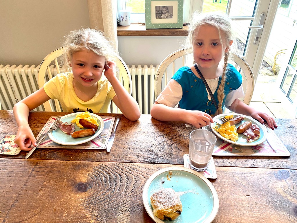 They clearly had the breakfast on the brain as I was frantically trying to get tea in the slow-cooker before school started on Wednesday when the girls suddenly appeared, grinning from ear-to-ear because they smelt food and thought I was making them a surprise replica Bon-Voyage breakfast! Rather than disappoint them I quickly hunted for anything that might pass as similar and found some frozen pain au chocolate which I served up with bacon, sausage and scrambled eggs. They loved it but I think I developed even more grey hairs!