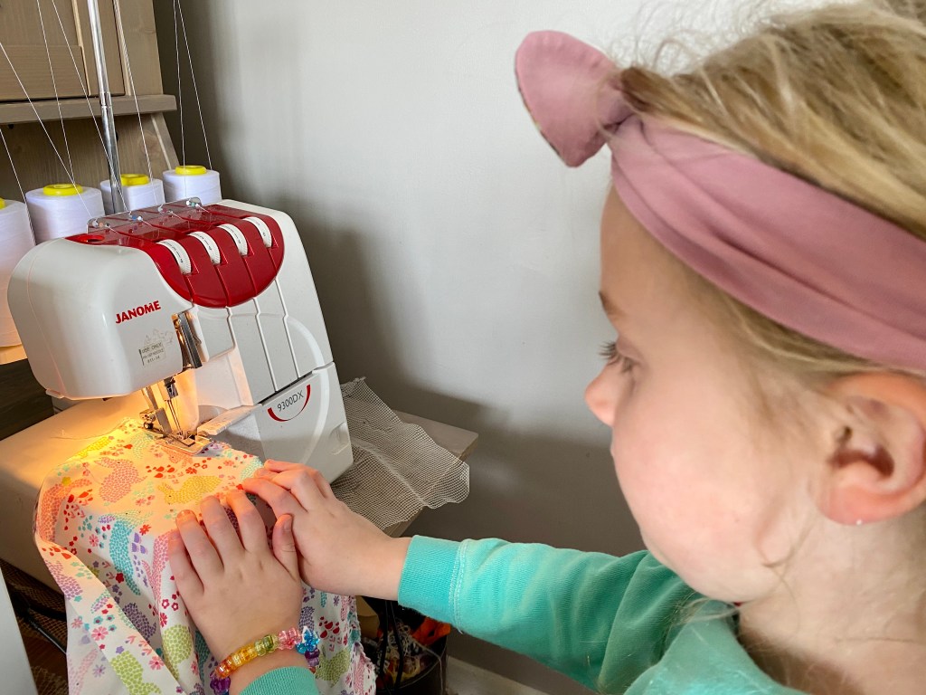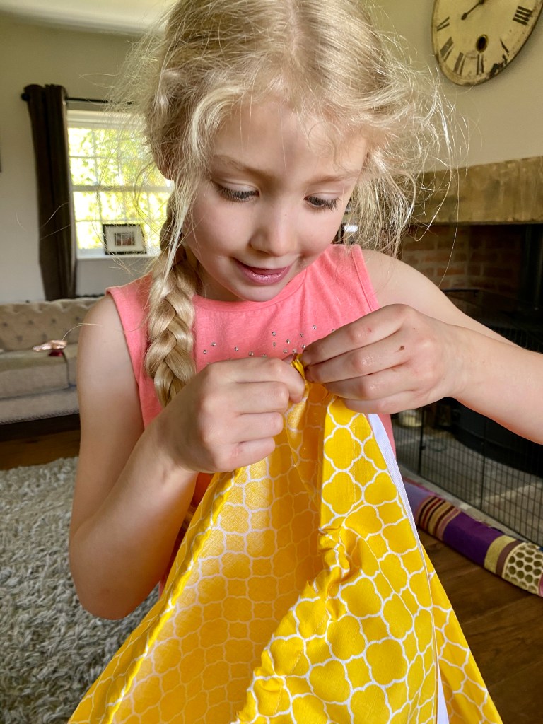 A friend of mine from the local hospital asked if I could sew up some bags for them to wash their scrubs in without having to touch them, and obviously the girls wanted to help, so we also fit that into the Easter holidays.