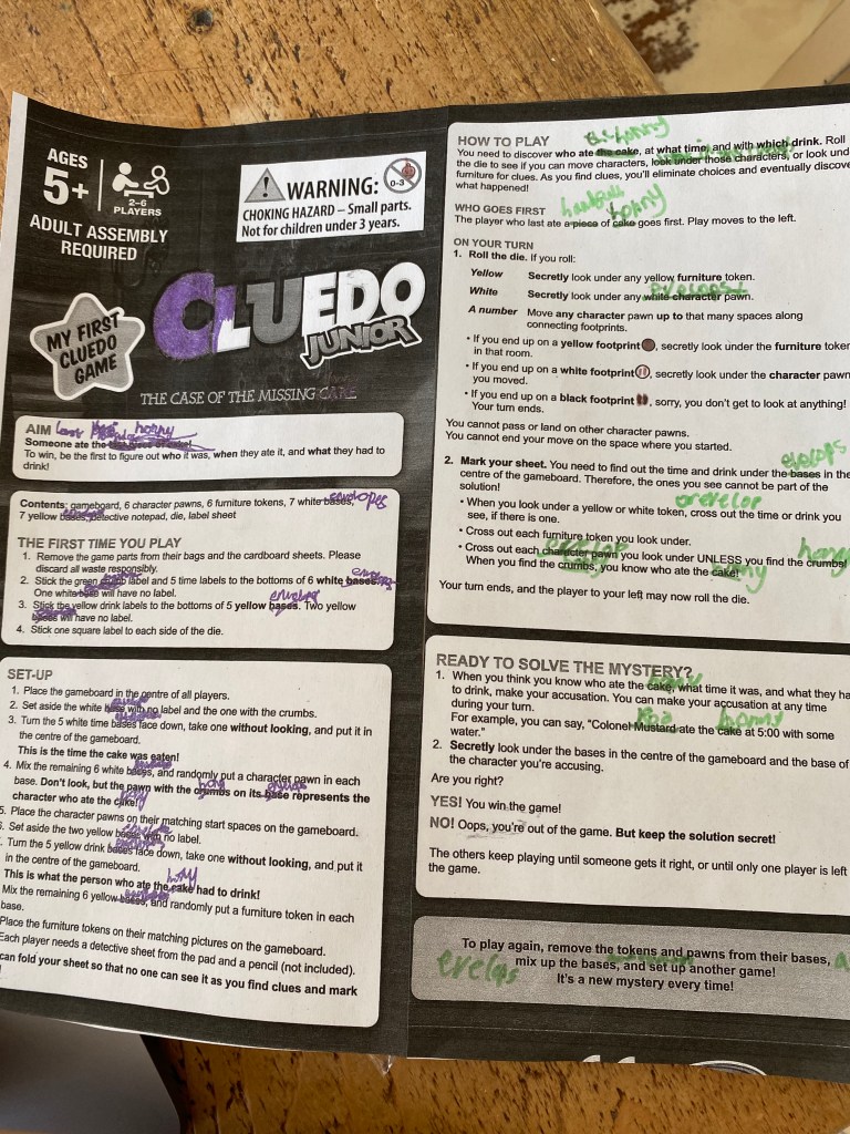 The girls then worked on their rules. As they were basing it on the Cluedo game we decided to copy those rules and edit and amend them to suit the new game. This was a really successful task and the girls worked brilliantly together. It also meant that the rules made sense, which could have been an issue otherwise!