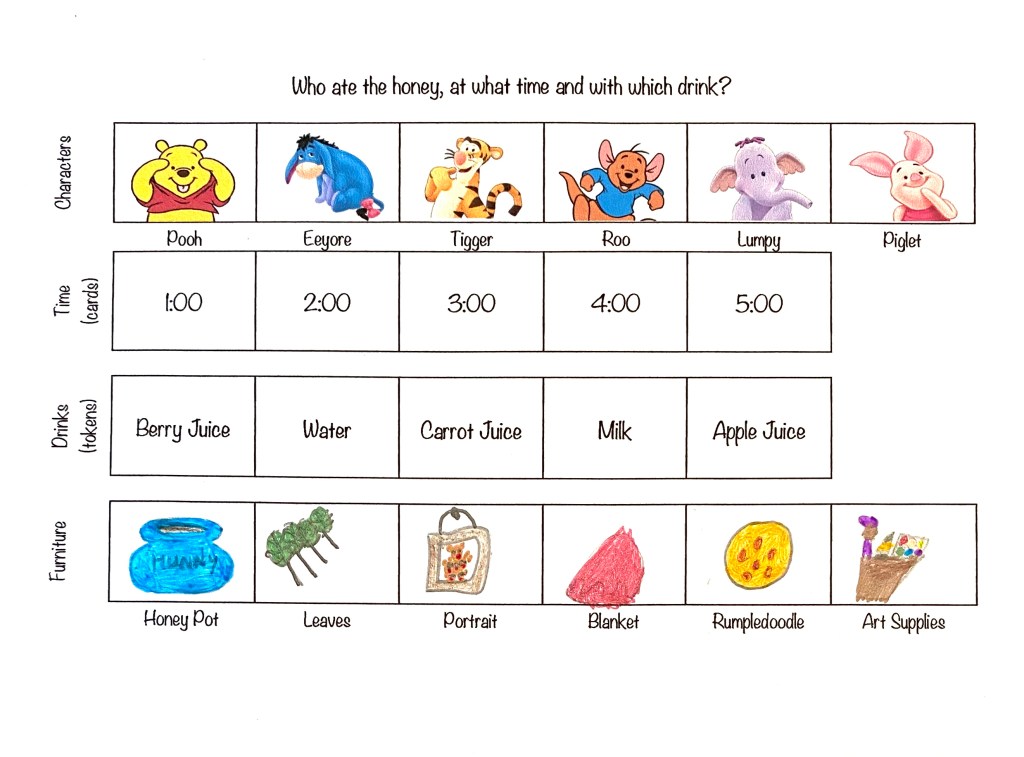 They then worked together to design the answer sheets that they would need to tick off during the game to discover who had stolen Pooh’s honey.