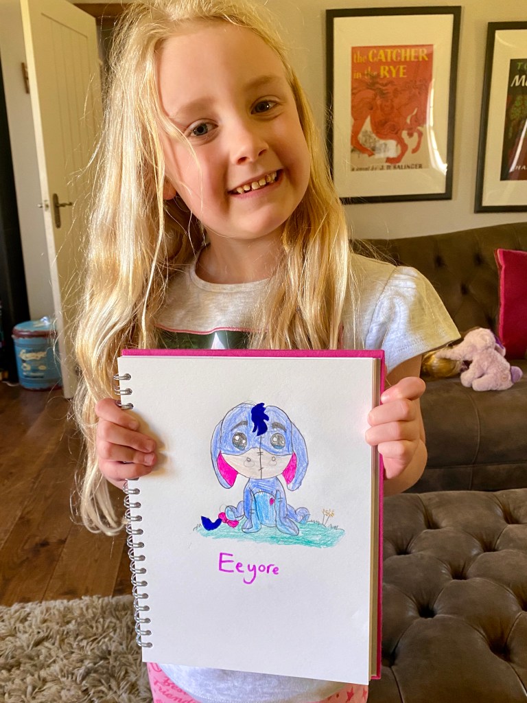 We then began to look at different characters from the story Winnie the Pooh, discussing them after reading the book. We drew some in art using the YouTube tutorials by Draw so Cute (such as https://www.youtube.com/watch?v=MkgCOc4bkaY) which the girls loved.