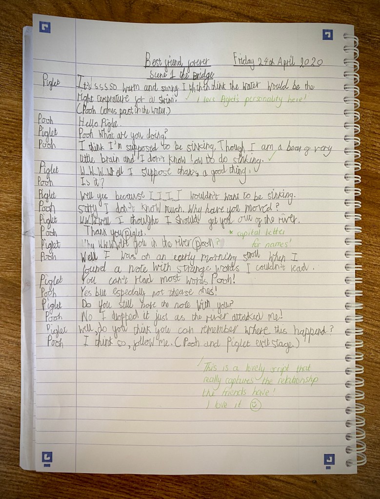 The final piece of Literacy work was a playscript. We looked at how to set the script out before they created their own independent pieces to act out with their toys later in the day. They loved writing these and spent almost the whole morning on them.