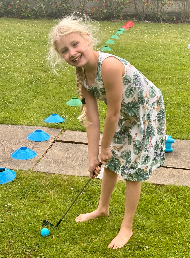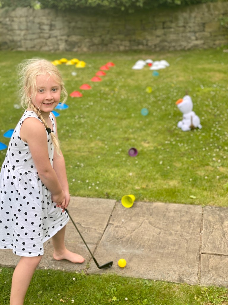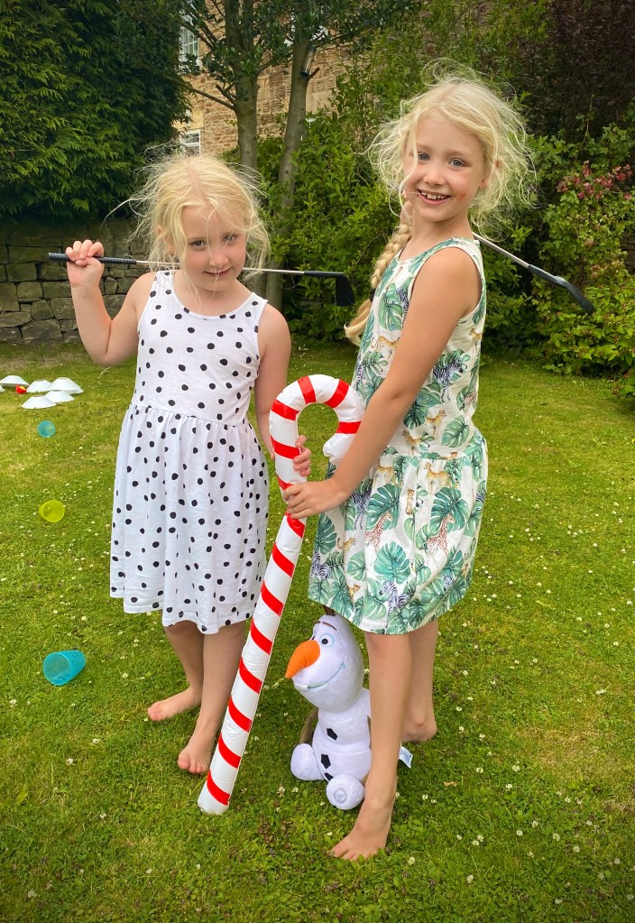 After lunch they decided they fancied a game of crazy golf at the Winter/ Summerland course (set up by Winnie), although they didn’t bother to either get out of their nighties or wash their dinner off of their faces! Winnie chose winter and Polly chose summer which meant they got around quite quickly but enjoyed it (when they actually worked out how to hit the ball!) They even got a candy cane when they finished, albeit slightly larger and less edible than the usual version!