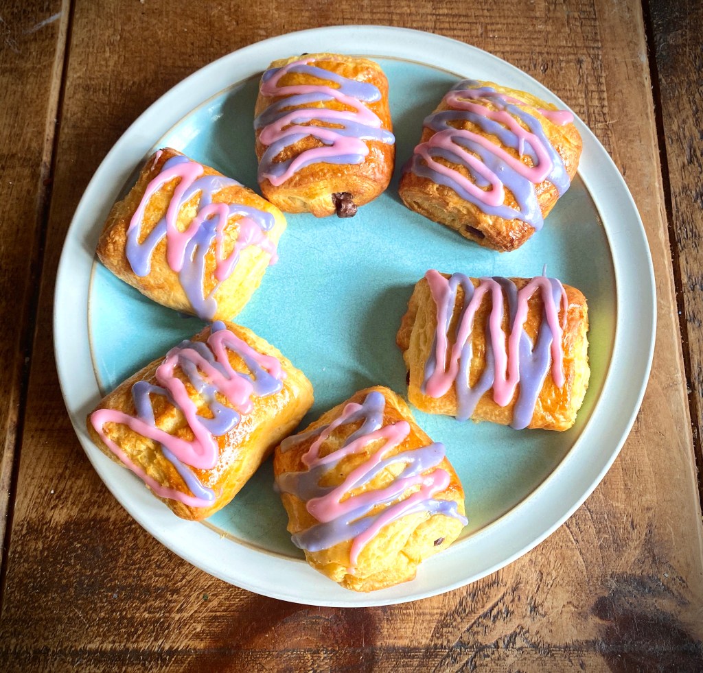 A nice short blog today as the girls spent most of the time entertaining themselves with all things Disney at the hotel while mummy did some work. Later in the day they headed to Magic Kingdom. First stop was to get a Cheshire Cat Tail snack (or 6…got to use those snack credits up. And yes, they ate them all! Easy peasy if you want to make them as I just used the Jus Rol Pain au Chocolate that come in a tin, then mixed up icing and decorated using a food bag with the corner snipped off…high tech central here!)