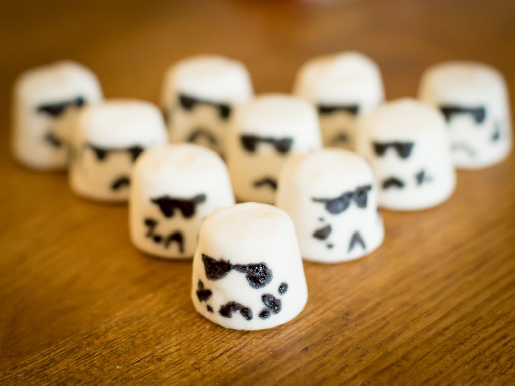 The first was Stormtrooper buns, because with Winnie in town you have to have the baddie element! These were just regular chocolate cupcakes with icing and marshmallows decorated with edible pens (I did panic they were using Sharpies at one point 🤣🤣)