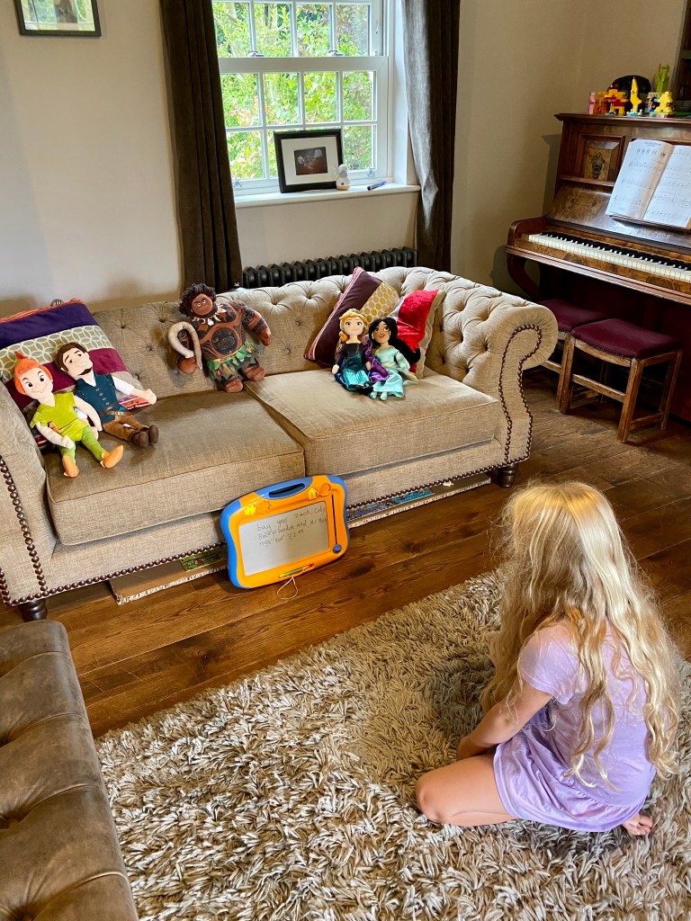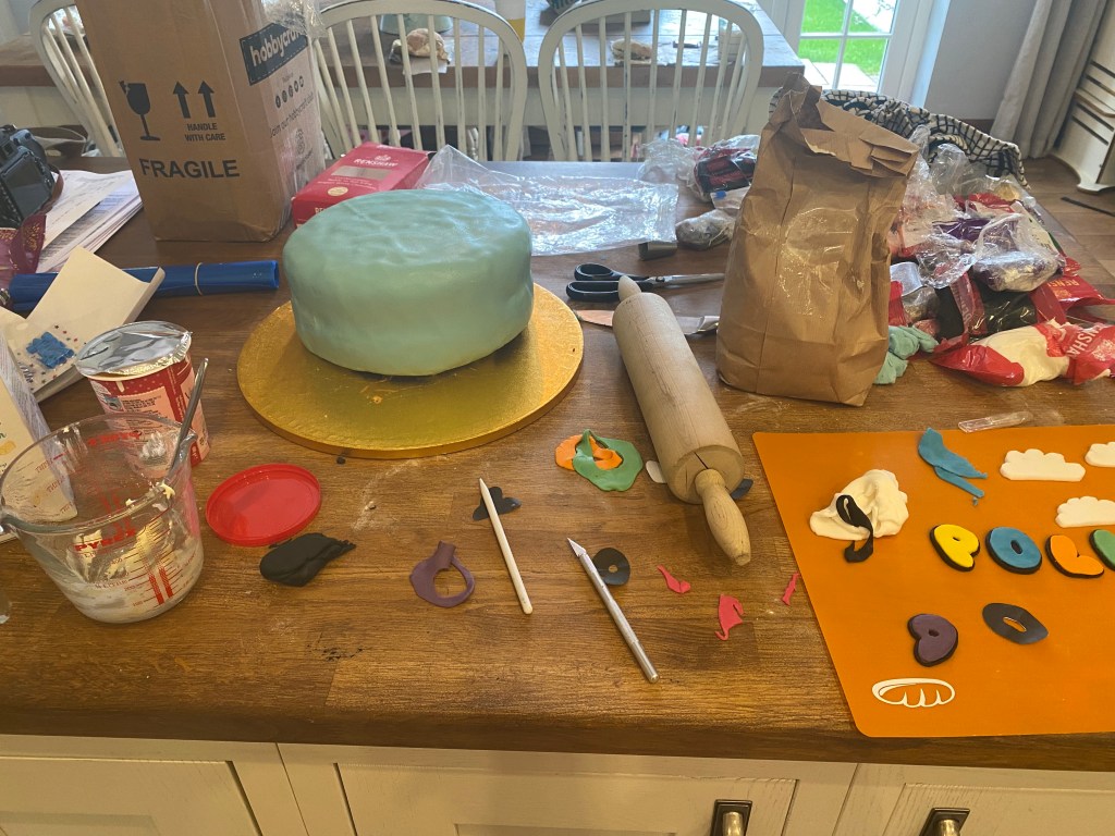 Winnie has a surprise planned so Polly came into the kitchen and read her book to me whilst I started one of my least favourite jobs, cake decorating! Now, I know I could pay someone to make one, but because I made Polly’s first birthday cake I felt I had to make Winnie’s, and then because Polly’s birthday falls after Winnie’s in the calendar year I couldn’t not make hers, and so on and on until we reach Polly’s 9th birthday and the 16th cake in total I’ve sweated/ cried/ rocked in a corner over! Mum guilt is so real!