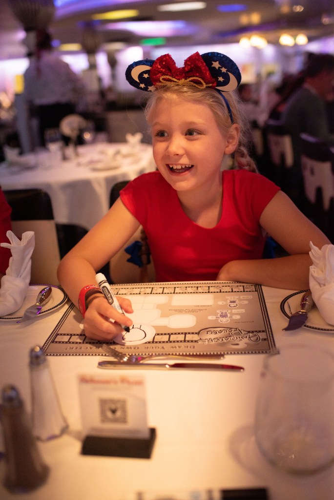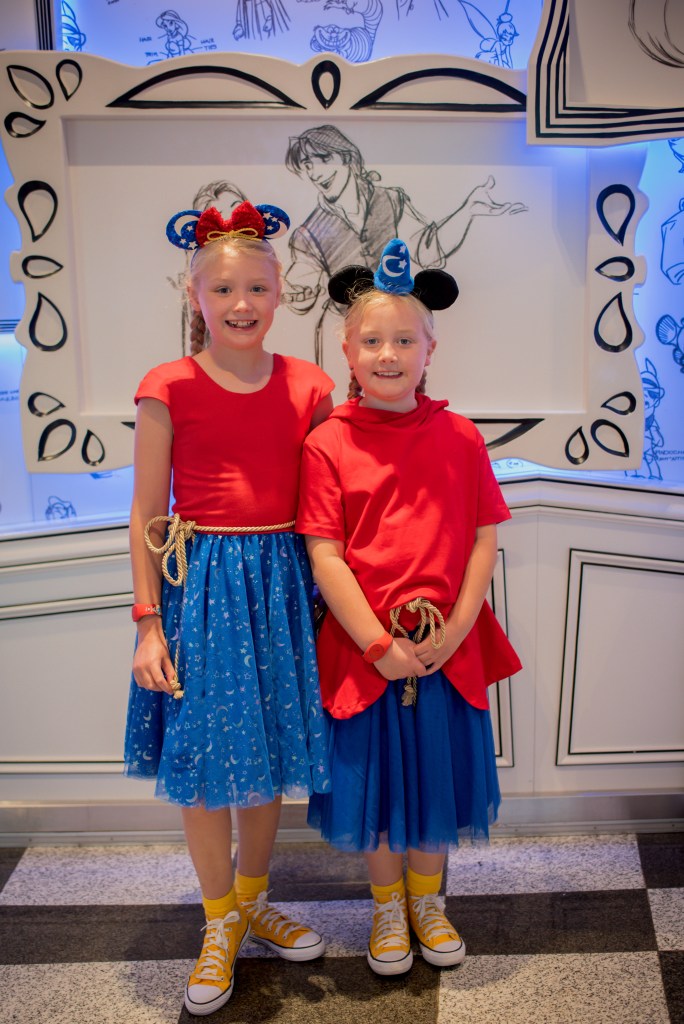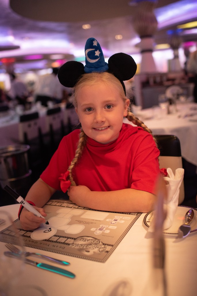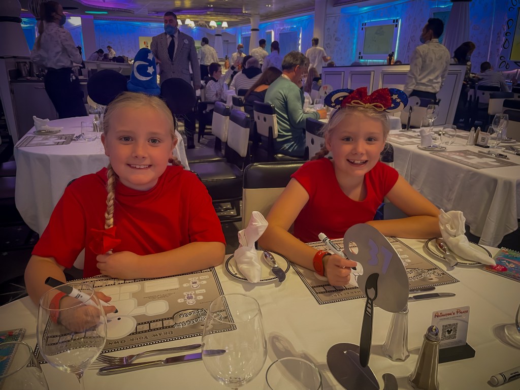 Now, we’ve only stayed club level once at WDW because I found a cracking deal on Ebookers (I think it was a misprice) but for the few days we did it, although it was great, we did feel a bit out of place. The cruise was completely different. The concierge team were lovely and very down to earth and they made the girls feel so comfortable. They are actually what Winnie said she misses most now she’s back at home! We had a quick drink (soft drinks/ coffee/ snack type food is available all day and alcoholic drinks from 5pm-10pm) before heading to pick up the girls and get ready for our first meal at Animator’s Palate (your restaurant order is shown on both your room key card and on the app).