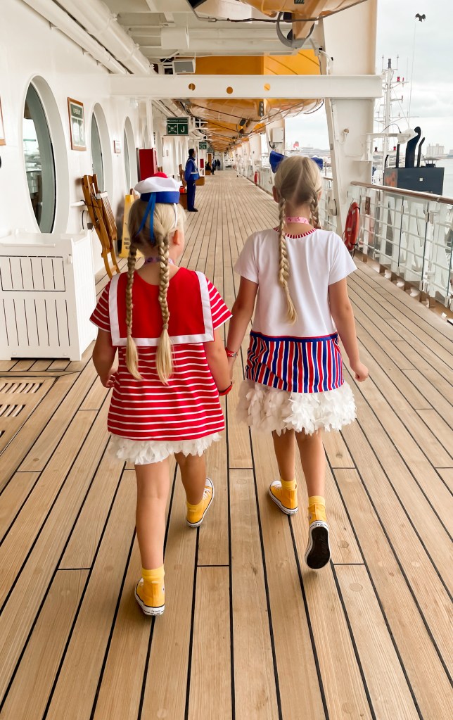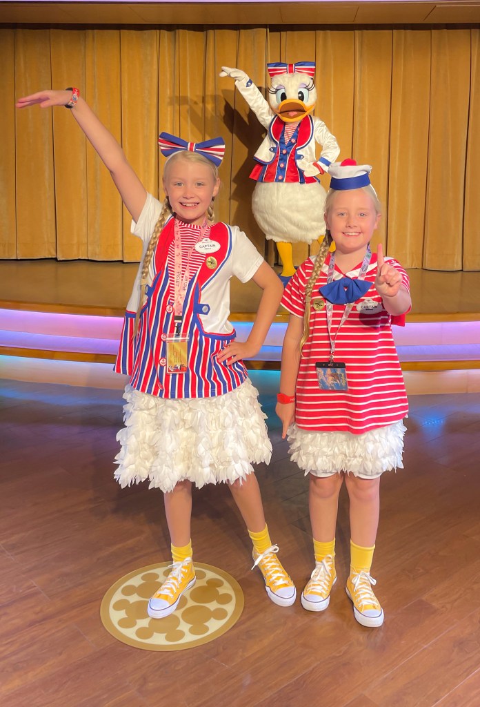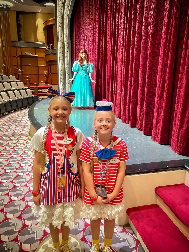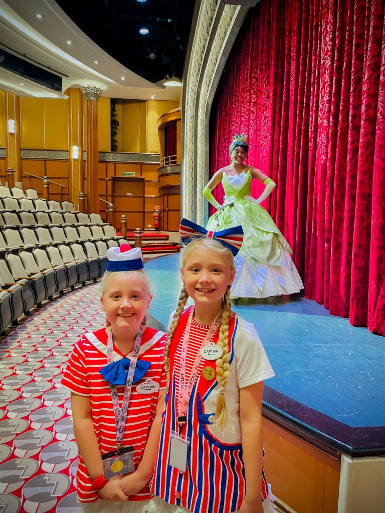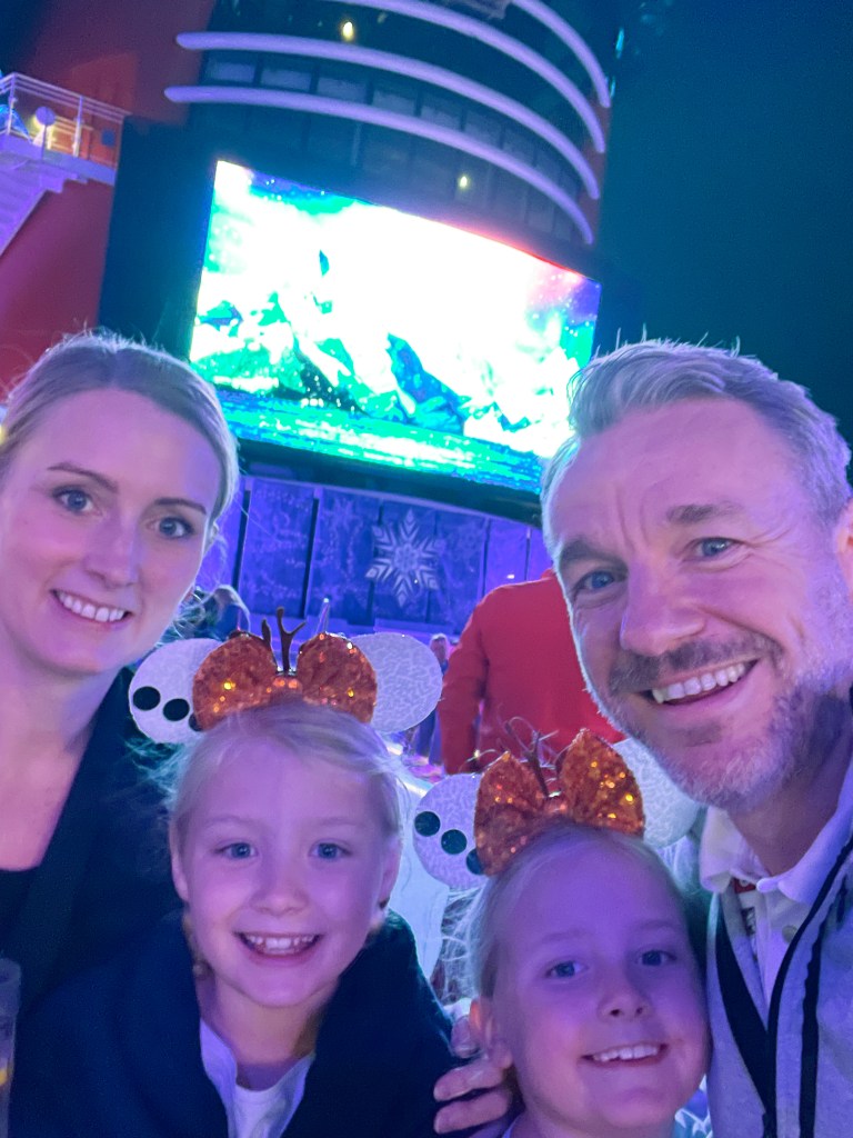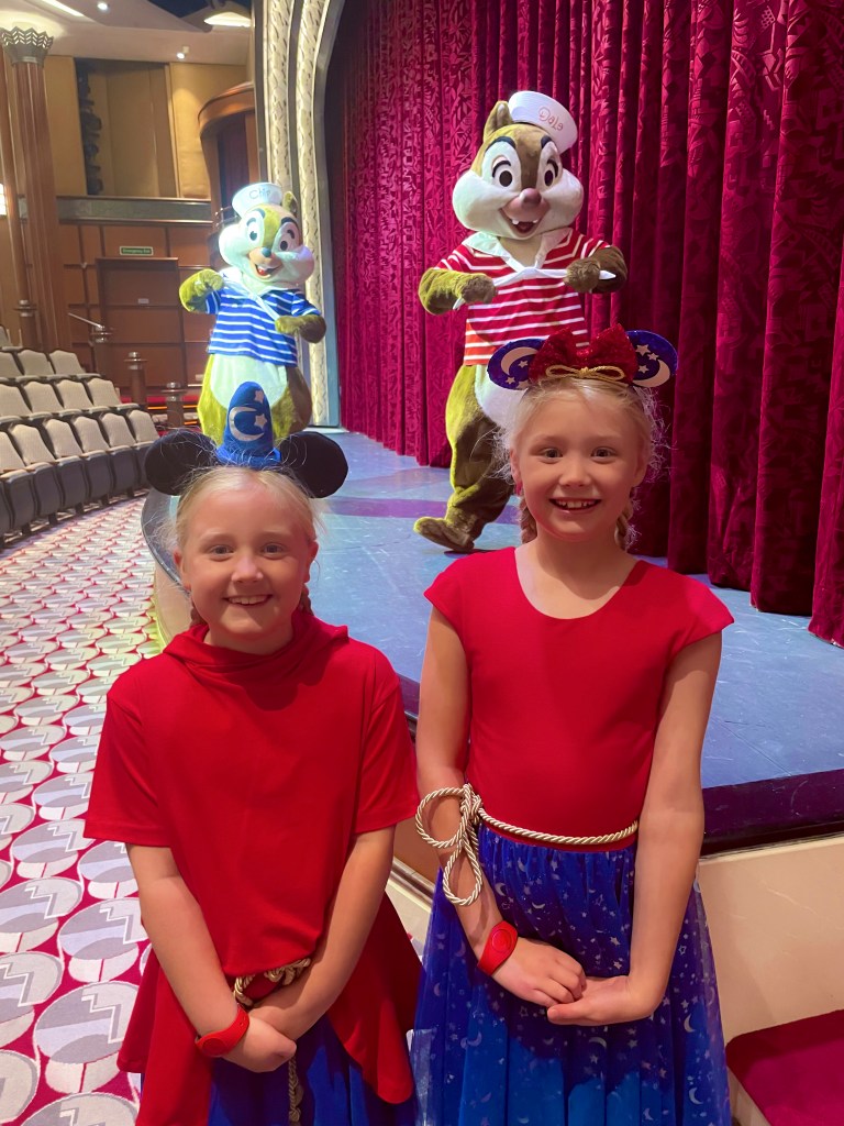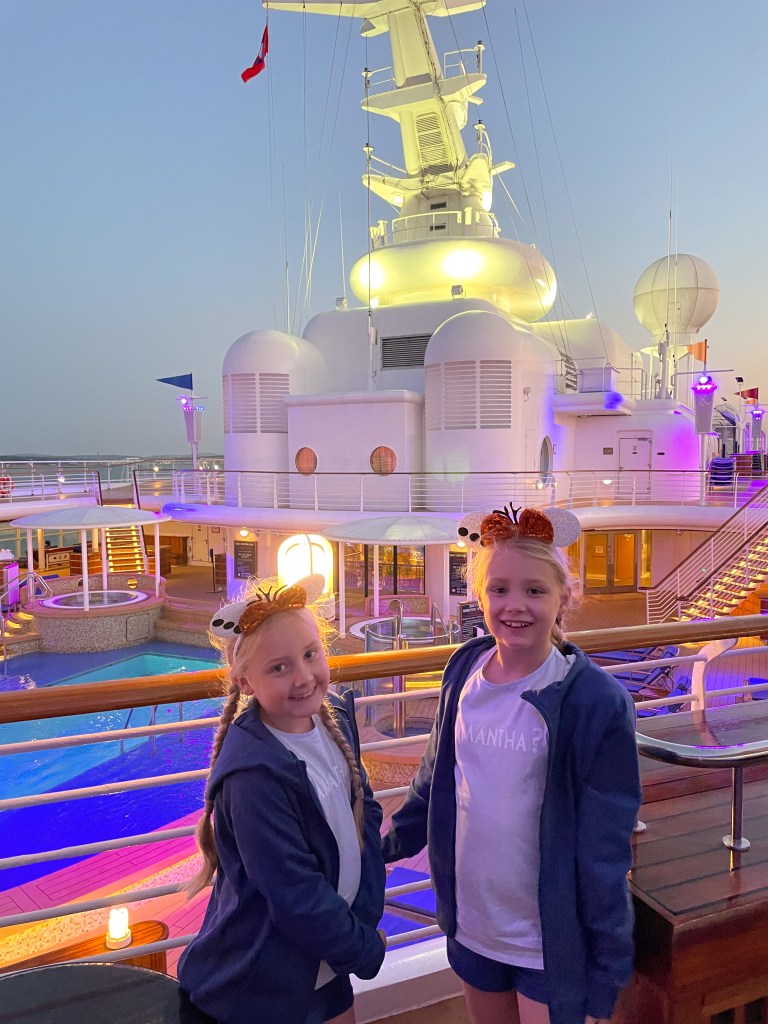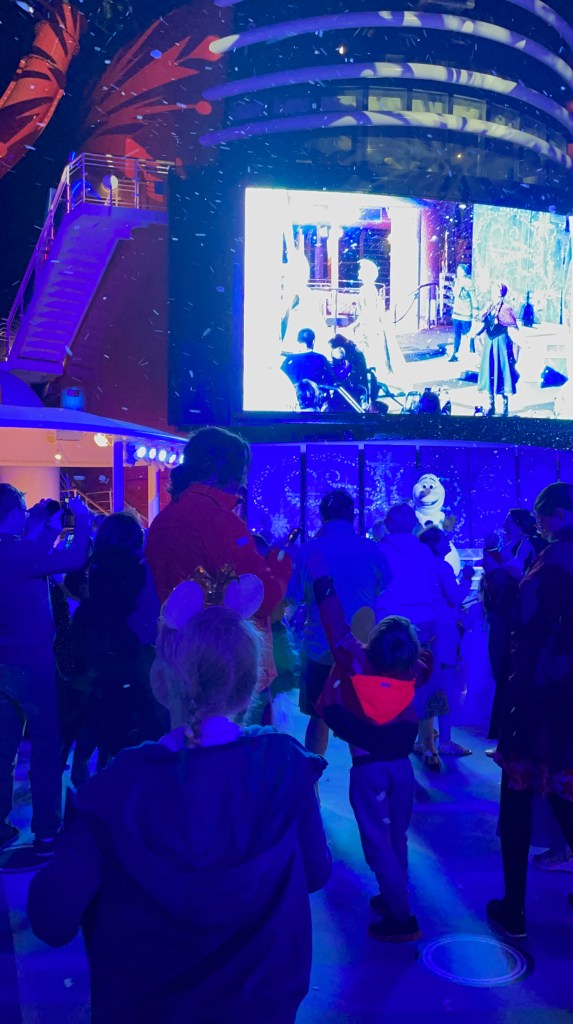 By now we were getting hungry so we decided to grab some food by the pool. The girls had chicken tenders and chips (their staple beige food of choice for all things Disney!) and we had a shawarma to share because Winnie said if it’s good enough for Tony Stark, it must be good! We then took a few minutes to get to understand the app a little more, and marked the activities/ character meets/ shows we’d like to do (you then get a reminder notification before each of these). For the 3 day cruise there were 3 shows; Freezing the Night Away which is a small Frozen show on deck, Tangled the Musical and Dreams, a full on Disney show with a whole host of characters. You are assigned a dining slot (early dining is around 6pm and late is around 8.30pm) and you choose a show the opposite time to this. We were the last cruise that had to book show slots before they decided you could just turn up, so we could actually have gone to any but it would have meant missing the meal which was never going to happen with us!! The rest of the time there was continuous entertainment alongside the character meets. Things like animation classes, quizzes, game shows, bingo etc happened daily. You literally could never be bored!