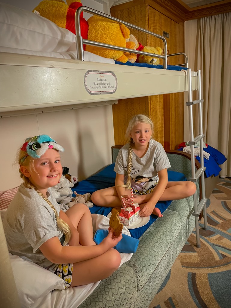 By this time it was 3pm so we headed to our new cabin. The cabin I’d originally booked was midship as we suffer with travel sickness, and I’d read this was the best location to avoid it at sea. However, the new cabin was at the back of the ship. It honestly didn’t matter though as none of us felt at all queasy at any point. We did take Kwells tablets at night just in case, but that’s all. The only time I felt any movement was one night when I felt like I was rolling out of bed as the ship turned, and in one of the theatres.