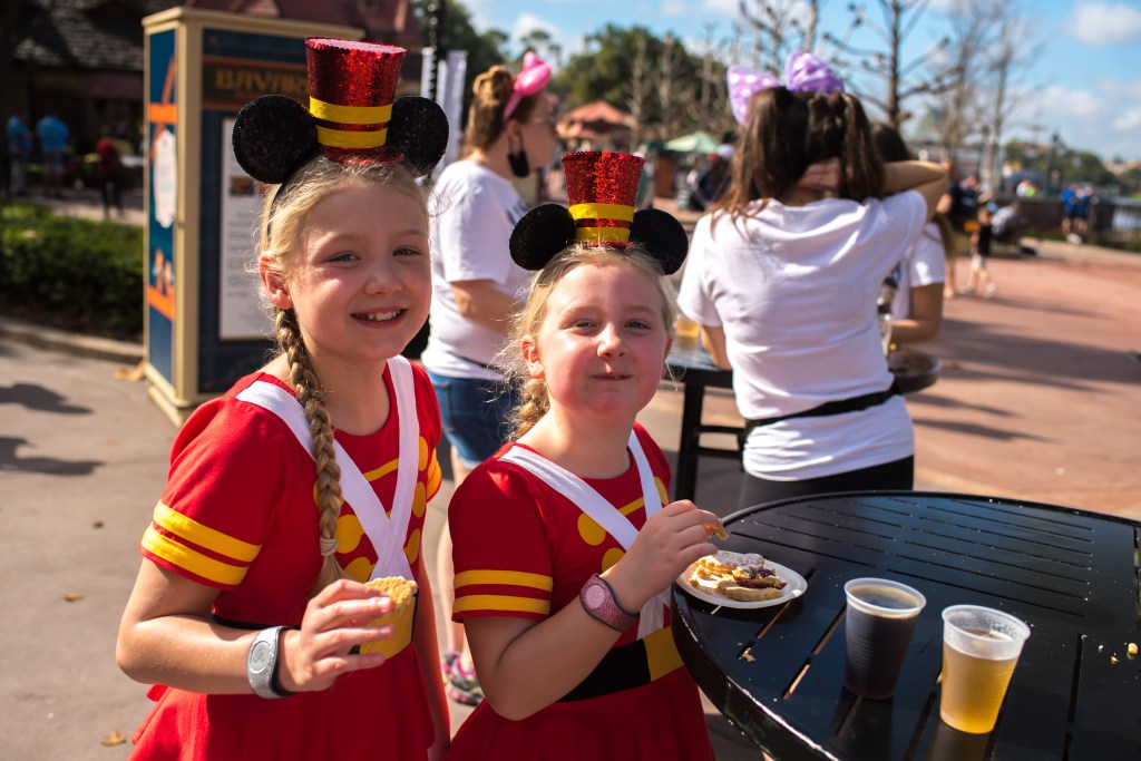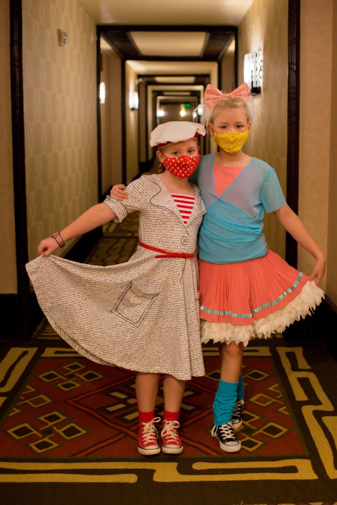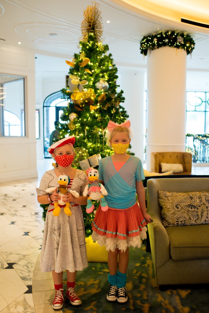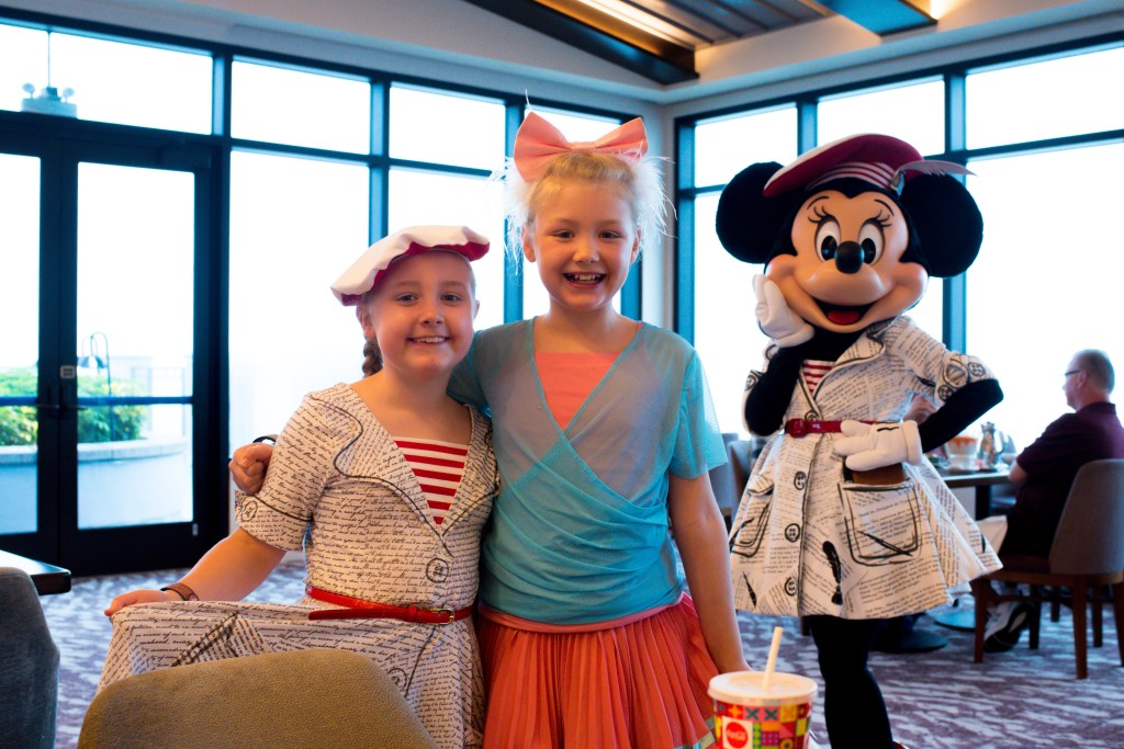 Whilst eating the meal, the characters came round to visit the tables. They were distanced but still interacted with each table individually and made such a fuss of the girls. Jenn kept coming over telling them how Daisy and Minnie were chatting about them backstage, and that they were the celebrities. They loved it and I think it helped to take Polly’s mind off of allergy. The characters also did little intermittent dances, which were really cute.