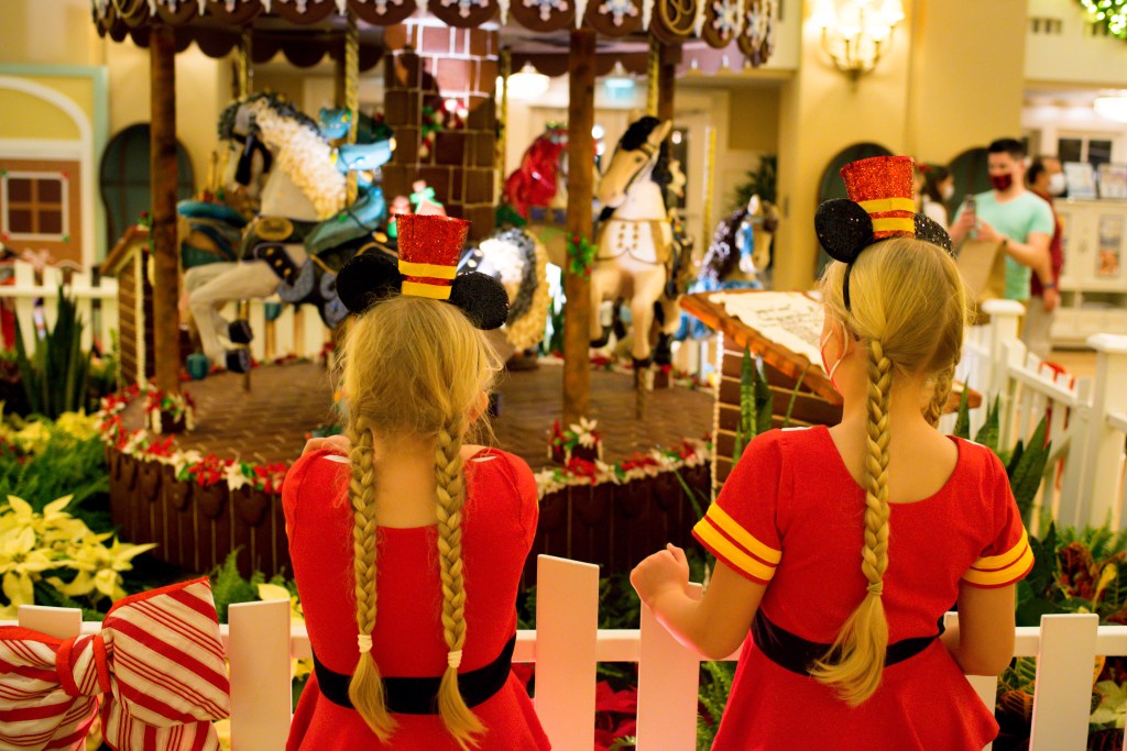 By this time, we were all pretty tired, and decided we really couldn’t face the crowds back at World Showcase. Polly still really wanted to see the Gingerbread Carousel at the Beach club which we were planning on doing after leaving Epcot, so we hopped on a Yacht and Beach Club bus and popped in to see it before grabbing an Uber back to our hotel to share a flatbread from the Mara in the room.
