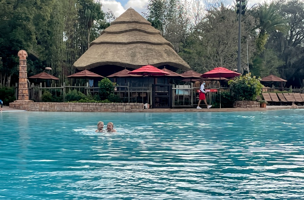The girls woke a little bit later today and decided they definitely couldn’t face a day at Universal as we knew it would be full on. We had been given 2-week tickets as our annual passes didn’t get used much at all due to the pandemic, so we all agreed rather than using them for one single day (especially a day we were tired on) we would hold onto them for a trip where we could spend multiple days at the parks if we decided to. Steve went to Mara to get the girls some breakfast which we ate in the room (so nice to have a table and chairs to sit around) We then decided to have some time by the pool before heading to Animal Kingdom for a few hours later on. However, we forgot that the pol doesn’t open until 10am in winter months, regardless of how hot it is, so we had a bit longer in our pyjamas watching the animal and a few more Mickey cartoons than expected in our room before we finally headed down.