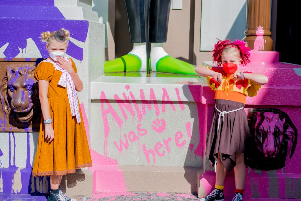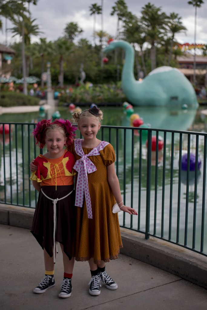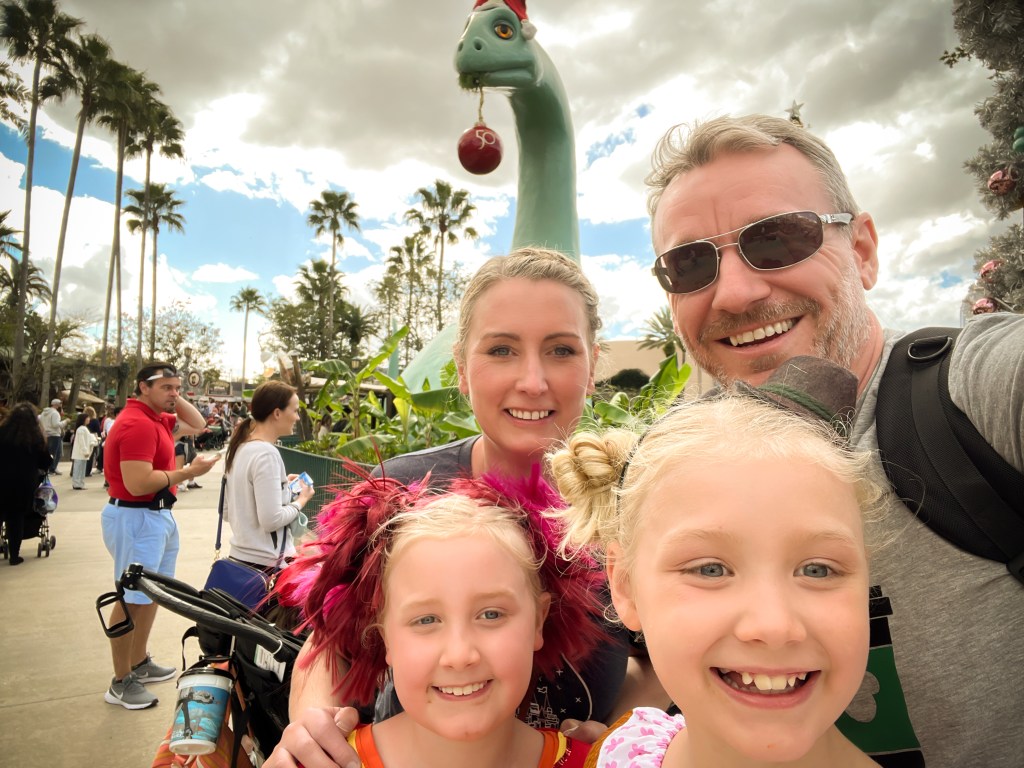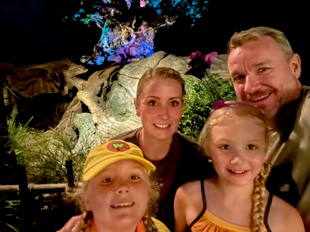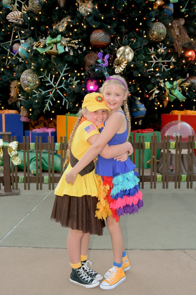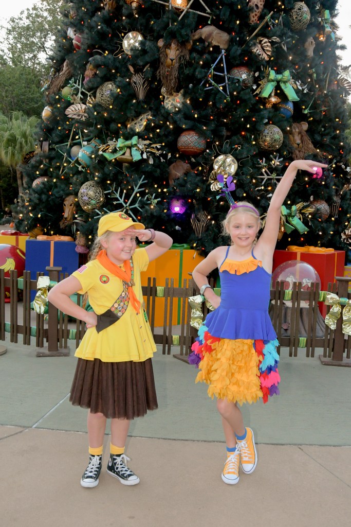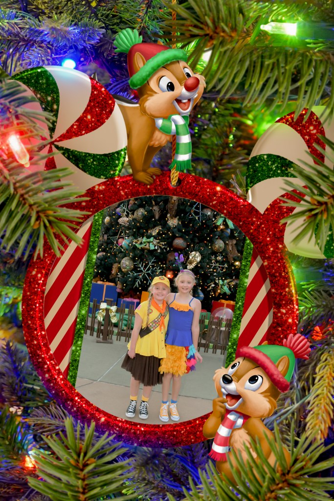 Back at the room I decided it was easier to pack by myself, so the girls and Steve went to the pool for an hour while I got things sorted. When they got back, we decided to head to Animal Kingdom for one last attempt to see the Beacon of Magic there. We arrived just as it was turning to dusk. There was a Photopass photographer near the Christmas tree at the entrance with no queue, so the girls decided to get a few photos and were so happy when they saw the Chip & Dale framed shot.