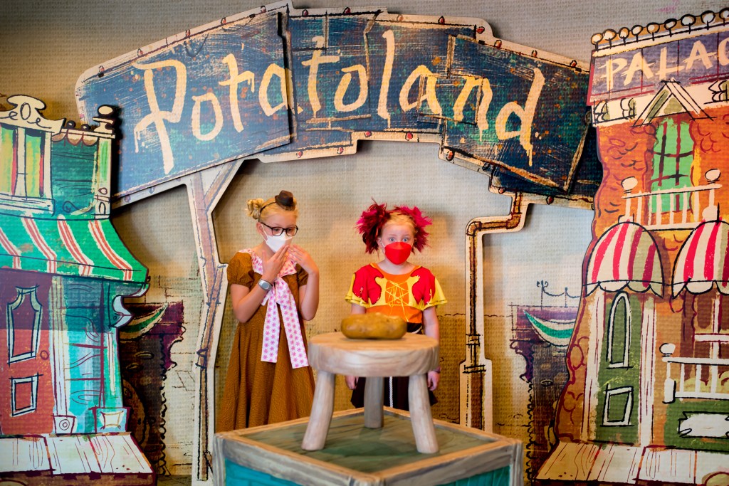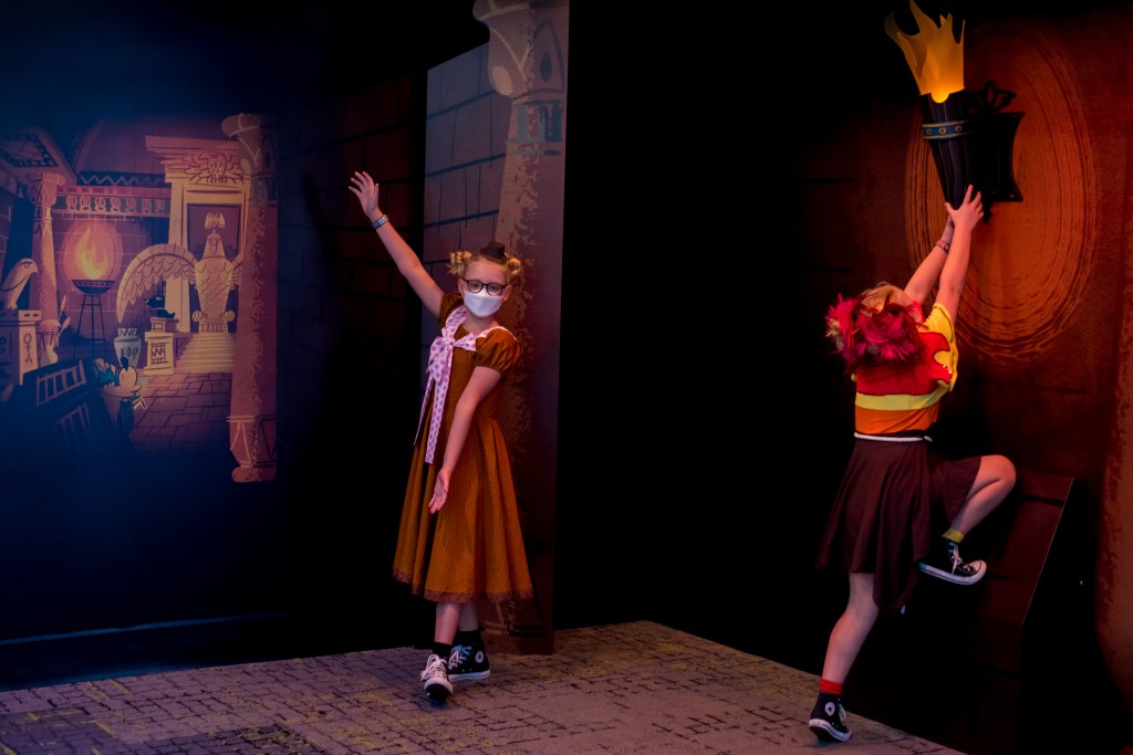 It was now about half an hour before our lunch, so we just perched on the wall outside and the girls did some of the quizzes on the My Disney Experience app. You can’t check in until 20 minutes before your reservation, but as soon as we were able to check in, we were called to our table.