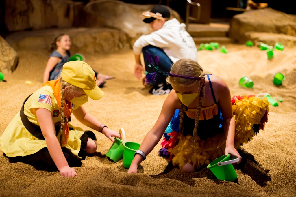 After a while the girls headed over to us, and we got a bit excite thinking that maybe they’d had enough, and we could get some food/ a drink after all. But then they uttered the words we dreaded; ‘Can we go and play at the dig site?’ Now, if you’ve not had the pleasure of visiting the dig site, let me explain a little about it. It’s an area where children can use spades and brushes to try and uncover prehistoric bones that are buried in sand. I bet you’re thinking that sounds lovely. And it does. Until you realise the sand is actually made up of the most hateful, tiny, sharp, stones in the world. That sand is the devil’s work. It hides in parts of you shoe that you didn’t know existed creating pain akin to stepping on a piece of Lego, creates craters bigger than those on the moon on your skin if you so much as lean on it for a split second, and gets into every single crevice on your person, hiding there for days, no matter how many baths or showers you take only to appear at your most uncomfortable moment! It’s a good job we love those girls!!
