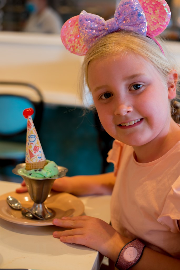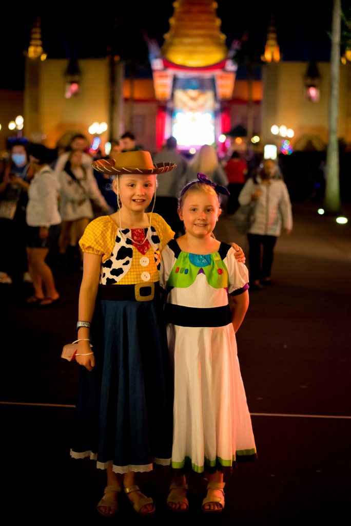 We decided that we were hungry and debated leaving the park as we’d had a message at 10am telling us our room was ready after doing mobile check in, but the girls fancied Tough to be a Bug (Polly only ever did it as a baby and Winnie’s never fancied it as she thought it might be scary) so we decided to grab something on the go. We love the Yak and Yeti quick service, but it was only 11am so we briefly considered something else before realising that honey chicken and rice is a perfectly acceptable meal at any time of the day. We sat on the tables around the back and somehow all decided at the same time that we did in fact want to do the Disney races. I had a minor panic realising I’d emailed RunDisney to explain we weren’t going to be taking part due to safety, but as I hadn’t received a reply, we figured we were still ok. This did throw a slight spanner in the works of our relaxing day as we now had to fit a trip to the Expo which is at the Wide World of Sports in. We did consider cancelling the 2pm Beaches & Cream reservation we’d made to fill time if our room wasn’t ready, but the girls really fancied it (again, something we’d only done with them once before when they were little, and despite it only being 5pm because it was so early in the trip, they were too tired to eat!!) In the end we decided to just go after Beaches and Cream and cut our Hollywood Studios evening down to just visiting to see the Beacon of Magic as we’d done everything we really wanted to do anyway, plus we were planning on heading back there on our final morning. We did the Bug’s Life movie which we all enjoyed, before heading out of the park. I never did get to see the floats, but there’s always next time!