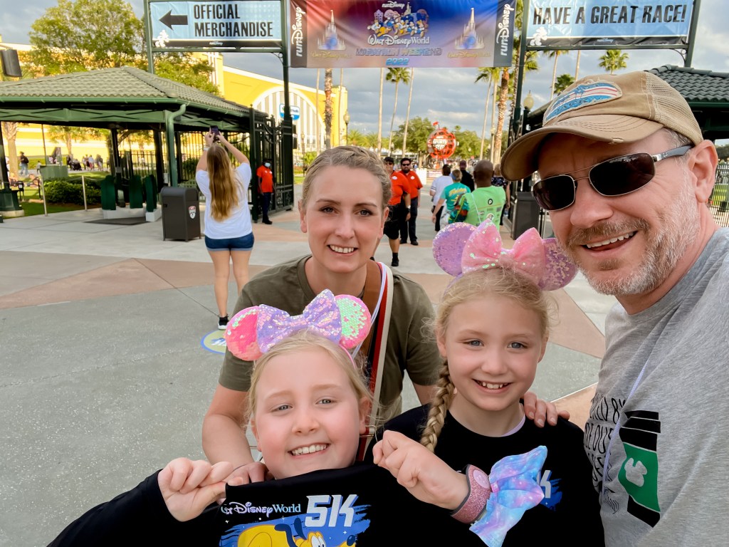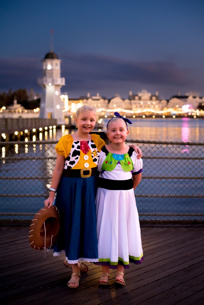 Steve dropped us off at Yacht Club and the girls and I headed straight to the room with the cases we had while he went back to Animal Kingdom Lodge to collect the rest. It worked well as we had everything, we needed to unpack in the cases I had (aside from the RunDisney outfits which I’d packed firmly away expecting not to use!) so by the time he got back we were all set up. The rooms at the Yacht Club are pretty recently refurbished, with wood floors and high beds to put cases under. We really love it there as it’s the perfect location for Epcot and Hollywood Studios (we like to walk if we can as it means you’re not ever waiting around for transport). However, contrary to popular opinion, the pool isn’t our favourite. Although the sand base feels nice, it isn’t that practical and gets all over the room no matter how careful you are. There are so many different sections, and with the slide entrance being across the Boardwalk, if you’re even marginally paranoid about keeping an eye on your children you have to be up watching them/ following them all the time. I think for little tinies who spend all their time in the shallow pool, or older children, it’s fabulous, but with children of our girls’ age I find it very hard work (and they are excellent swimmers). I’d put in a room request for a partial Boardwalk view even though we officially had a garden view room, and we ended up with a ground floor room that looked out onto both the pavilion and the Boardwalk, meaning even if I just rolled the girls out of bed onto the patio for the 10k they’d still be able to see Steve. Winner!