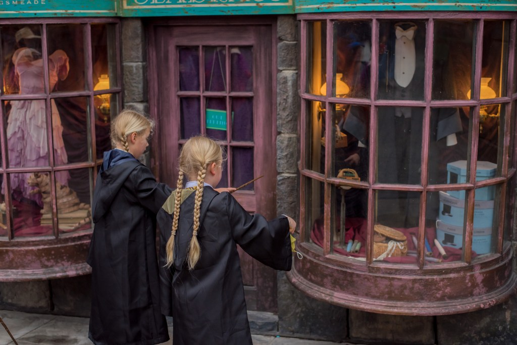 We rode a few rides including some first timers for the girls such as Forbidden Journey and Spiderman. We did plan on also doing Gringotts but knocked that one the head for the morning when the Hogwarts Express broke down for a good length of time. Instead, we headed to the Pteranodon Flyers which is one of the girls’ favourites. We weren’t sure if Polly would be allowed on as she’s over the height limit, but as Winnie was under, they let them on together with Polly as the accompanying person. As they set off the attendant shouted out that it was Winnie’s birthday, which she loved (even though it wasn’t her actual birthday that day!)