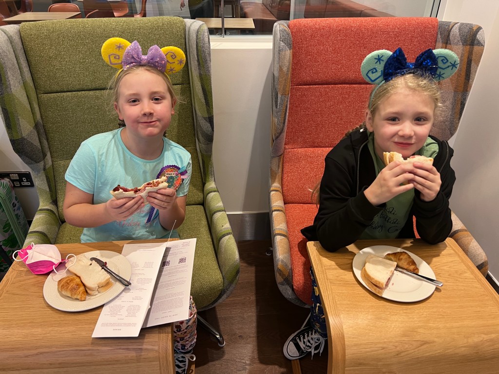 As I’d booked these flights at a time when travel was still not allowed, we managed to somehow get an incredibly cheap upper class indirect return flight (although they changed the return flight to direct after a schedule change which wouldn’t have worked, which was a huge bonus), which meant we got to use the 1903 lounge before our flight. It’s really nice in there, so time passed quickly and before we knew it, we were on the flight chilling out watching movies. It seemed like no time before we landed in Atlanta. The queue for immigration took around 20 minutes, then we had to collect our cases, drop them on the transfer carousel and go through security again before catching the internal train system to the new gate. It was getting late by this time and the girls were tired, so we had a quick bite to eat and waited to board. As soon as we took our seats the girls fell asleep, which was good even if the flight was very short.
