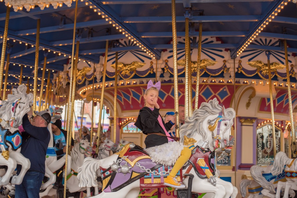 We didn’t have a set plan and planned to head back to the hotel as soon as the room was ready. We entered Main Street to see some of the characters heading up to the train station, so were about to stay and wave to them when the lady who drives the Disney car asked if we’d like a lift to the castle. The girls were really keen, so we set off through the crowds (it gave me flashbacks to trying to drive away from Pride Park after a football match without taking out any unsuspecting fans!) to the castle. It was a fun way to start the trip for the girls, but I’d much rather have preferred to not have the attention created by a car with the loudest horn I’ve ever heard!