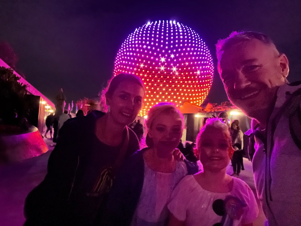 The plan was to walk to Epcot but as a boat was just pulling in, we got on that instead. The captain got everyone to wish Winnie a happy birthday which she loved. We then set off on the painfully slow journey. I know it’s meant to be relaxing, but I pretty much don’t relax, ever. I thought we might get off at the Yacht Club and walk to Epcot from there, but no. The girls wanted to go the whole way, so over to Boardwalk we went, unloaded there, reloaded, and set off to Epcot taking about 4 times as it would have done to walk!!