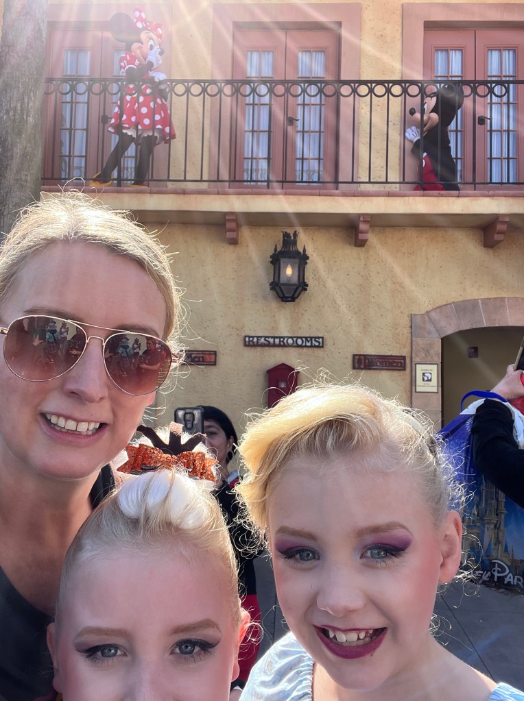 We woke up and Steve went off to get breakfast for the girls while I got them ready. The lady arrived promptly at 7.30 and got going. Now, if I so much as come within 2 metres of them with a hairbrush, I get moaned at but having hair extensions literally sewn into their tightly pulled back hair was absolutely fine at Disney!