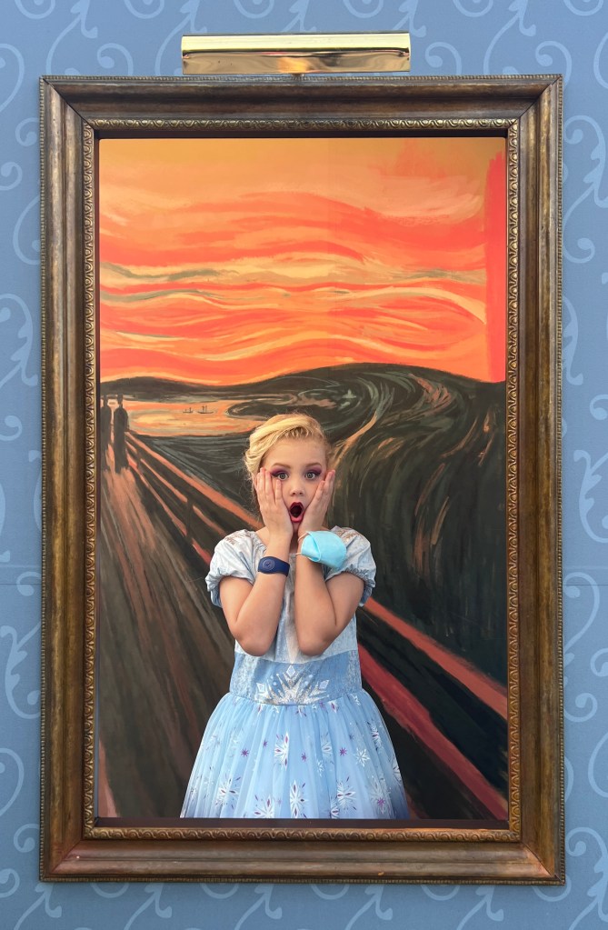 The girls met Mexican Donald but didn’t want to meet Anna and Elsa (they find face characters much more difficult). They also loved posing in classic painting sets.
