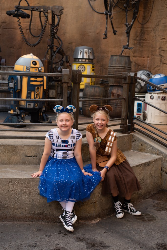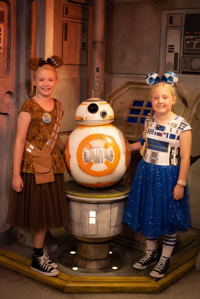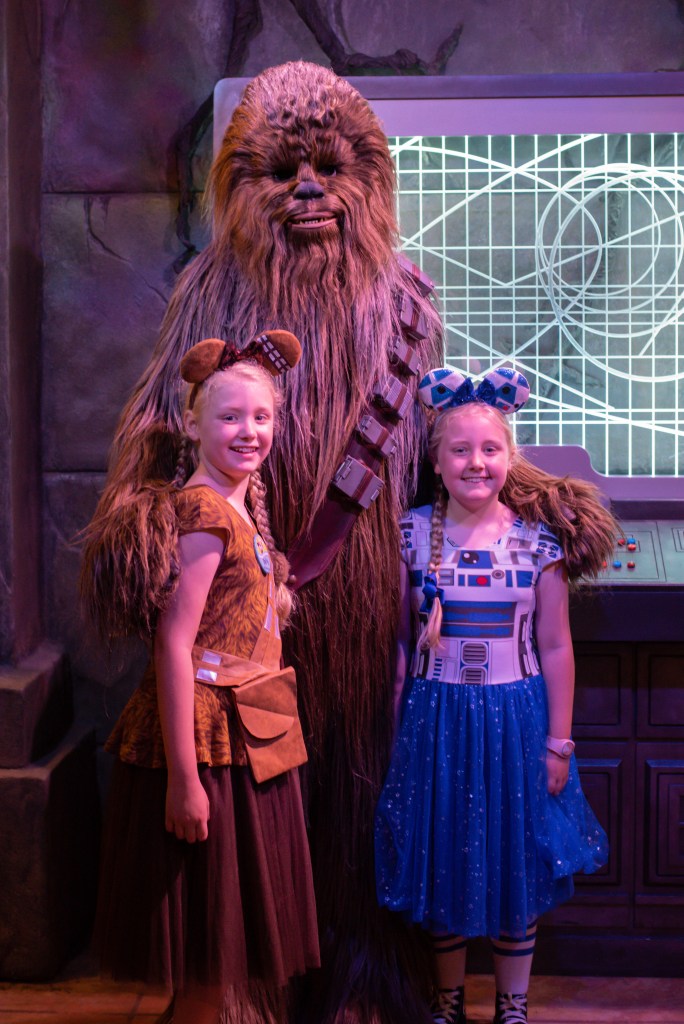 We headed to Galaxy’s Edge for Rise of the Resistance. I think it’s good to get this done early as it goes down a lot and we didn’t want to risk not doing it. We were a bit early so stopped for a quick photo pass photo. The photographer was a bit serious to start with but ended up spending ages with the girls (which meant a huge line formed behind us. Sorry anyone that was waiting!) and took loads of photos.