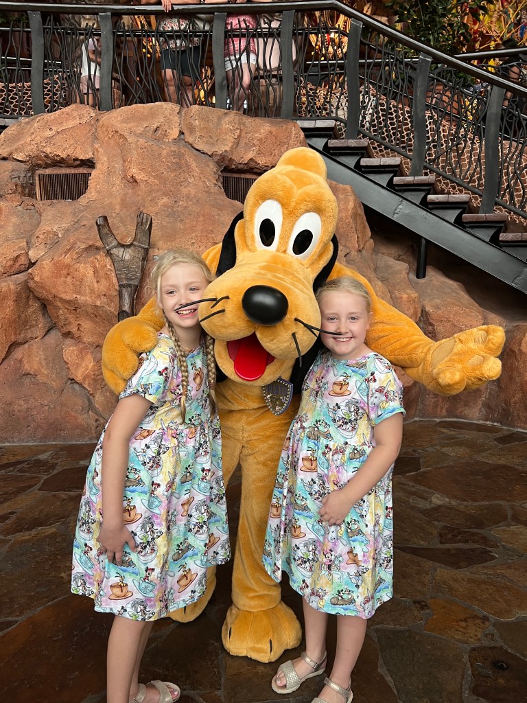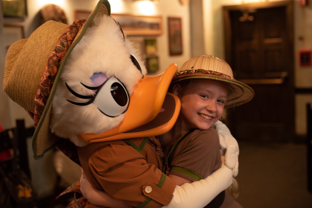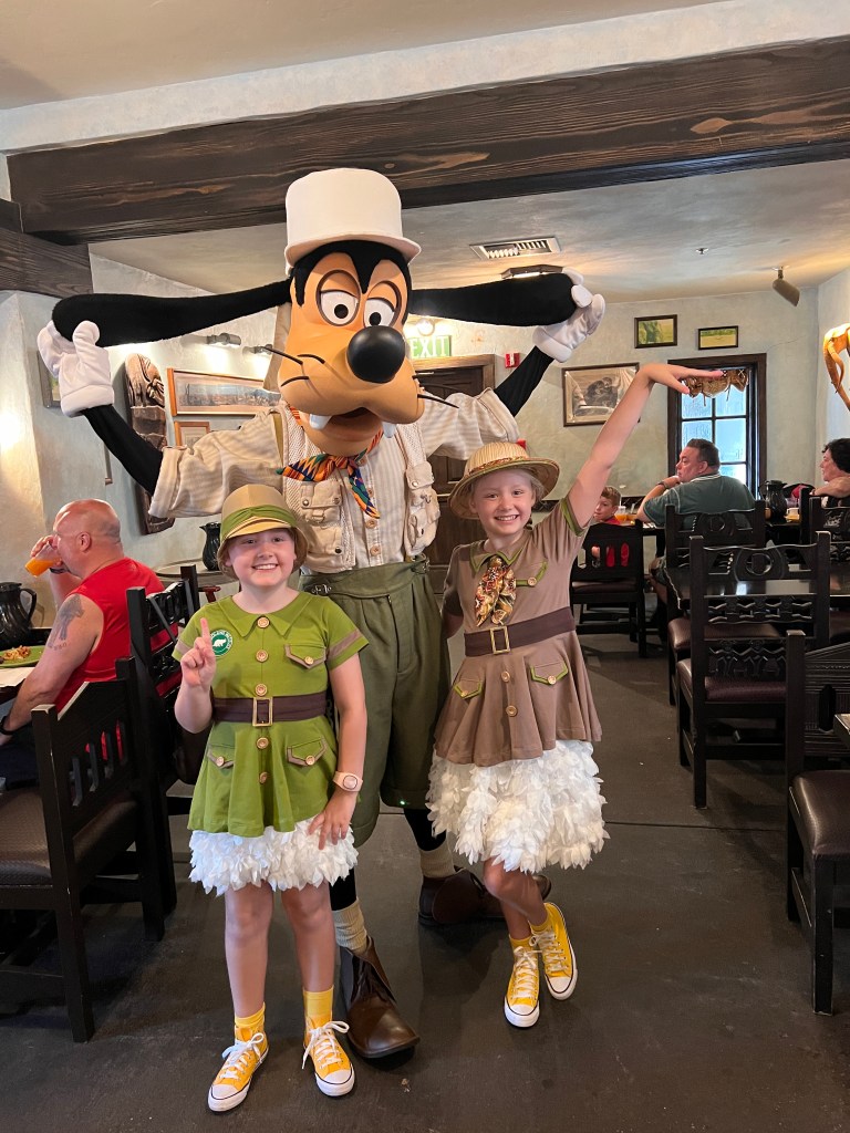 As Polly was awake too they had a bath and watched High School Musical: The Series before getting up and ready to go to Animal Kingdom. We weren’t planning a massive day there but had a Tusker House breakfast booked, and wanted to ride Flight of Passage, so headed straight to Pandora. On the way we bumped into Jade, James and Arlo again and had another brief catch up.