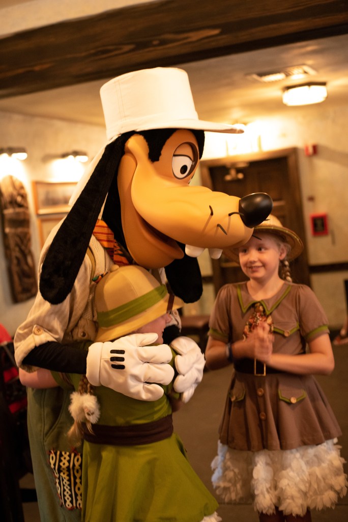 After Pandora we headed to meet Mickey and Minnie as the safari was temporarily down, and we didn’t want to risk being late for breakfast. The queue wasn’t too big, and Mickey & Minnie were lovely. Mickey gestured eating to Winnie which she took to mean ‘I’ll see you in Tusker House’ and then spent the walk there trying to work out how the characters could get from one place to another/ change outfits so quickly (she decided the ‘cast members only’ doorways are secret portals).