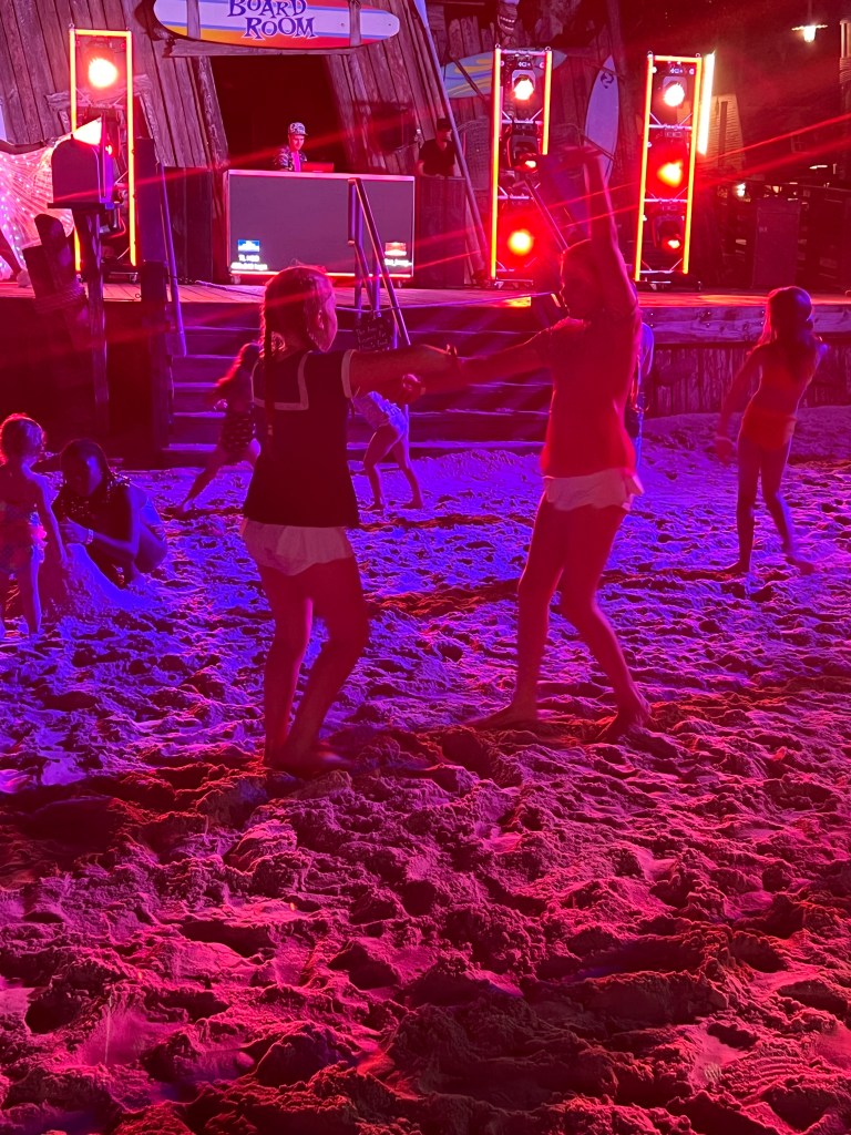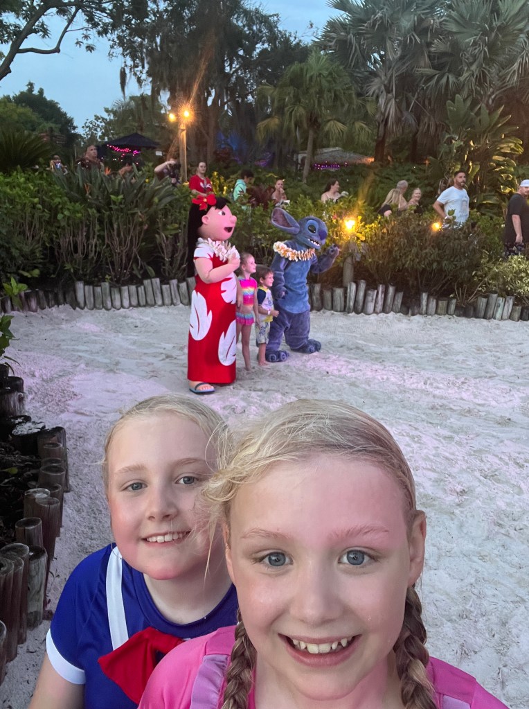 At 8pm the characters appeared to open the dance party. Mickey, Minnie & Goofy were there in their beach clothes and danced amongst everyone, while Lilo and Stitch had a traditional meet and greet line (we didn’t queue as the line was long and the girls weren’t bothered).