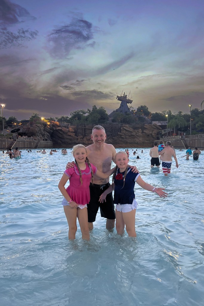 The event started at 8 but you could enter any time from 6, so we decided to go early as knew the girls (and us!!) wouldn’t last all night. We haven’t been to Typhoon Lagoon for years (other than for Steve’s surf lesson) so were worried we’d struggle to navigate, but as we entered a lovely CM talked to the girls and suggested where to go at what time.