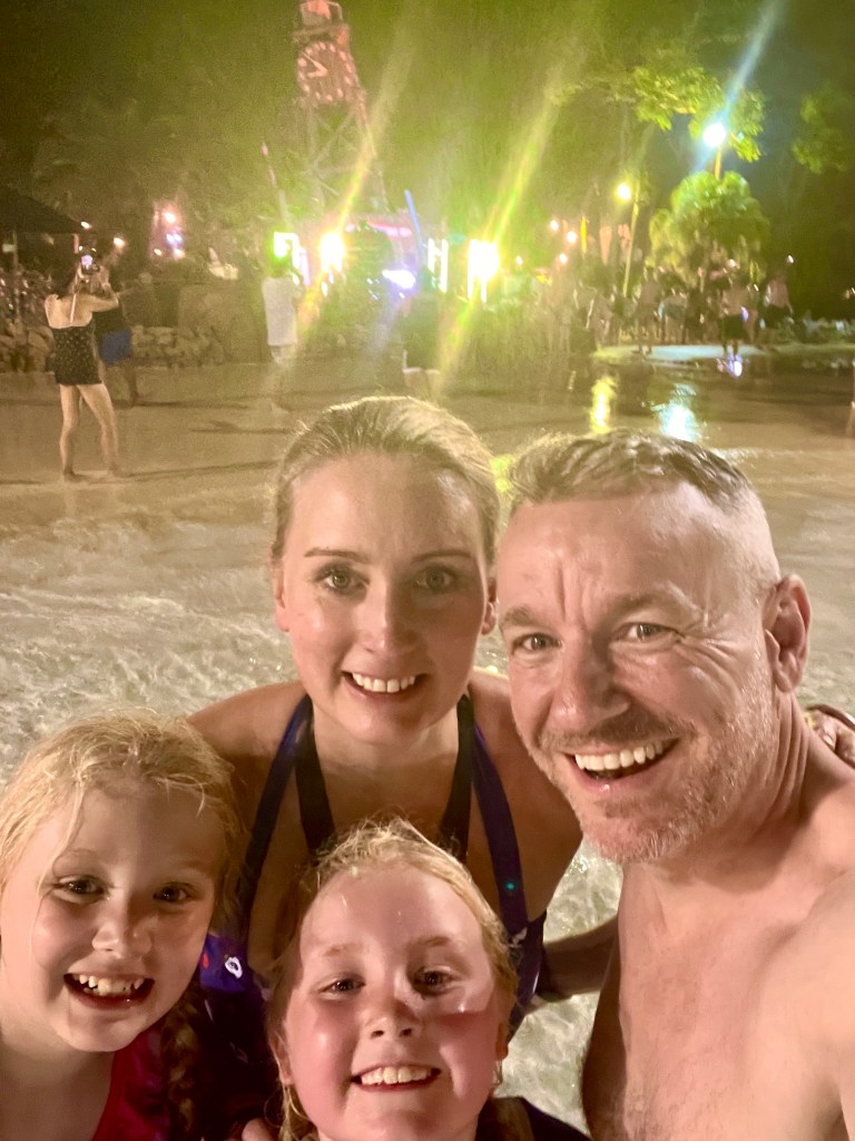 As we have water park tickets included with our regular passes, we decided to mainly focus on the unique party bits once they started, but the girls queued for the Crush n’ Gusher on their own (a huge thing for them as they aren’t the most confident) before we grabbed a bite to eat and hit the wave pool just as the sun was setting.