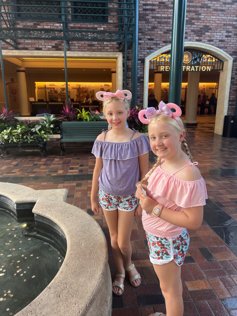 When we got back to the room it was obvious the air conditioning wasn’t right. It was still growling, and the room wasn’t cool. Steve went back to reception. While he was there the maintenance man arrived and said that the air conditioner needed a new part that would take a while to sort out, and that the room was definitely not the right temperature. He phoned his manager and told him to phone front desk to explain and told me we’d need to move rooms, so the girls and I got the few bits we’d got out packed back up. Steve then text to say we were being moved and he’d come up to help with the luggage. It was now 9.30pm and the girls were tired, but it couldn’t be helped, and the staff were so good at helping get everything sorted. The new room was much cooler, and we quickly unpacked rte bits we needed and got them into bed. Plans for a Magic Kingdom rope drop tomorrow have been abandoned, and we’re going to explore Riverside instead.