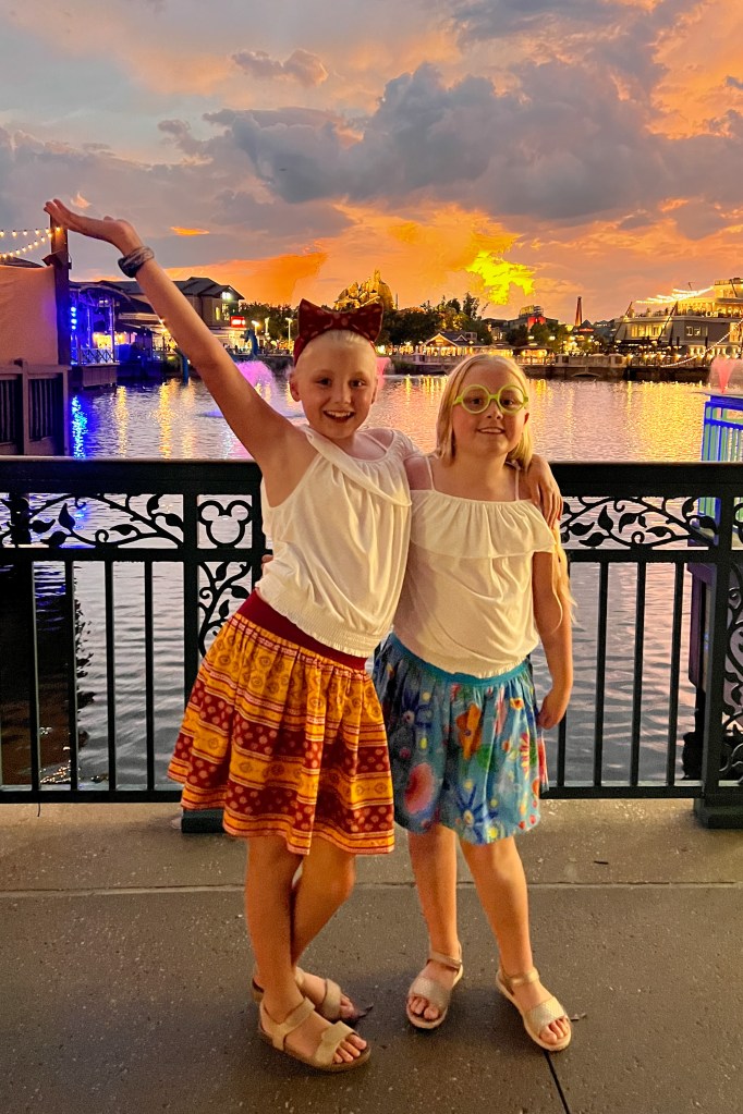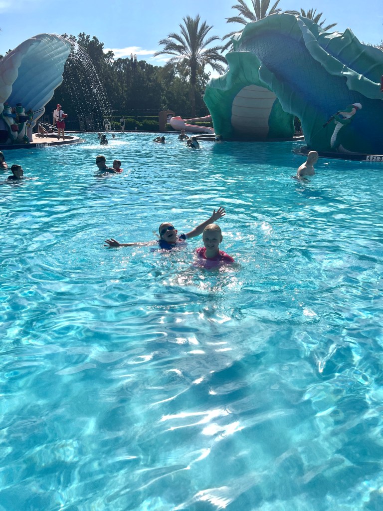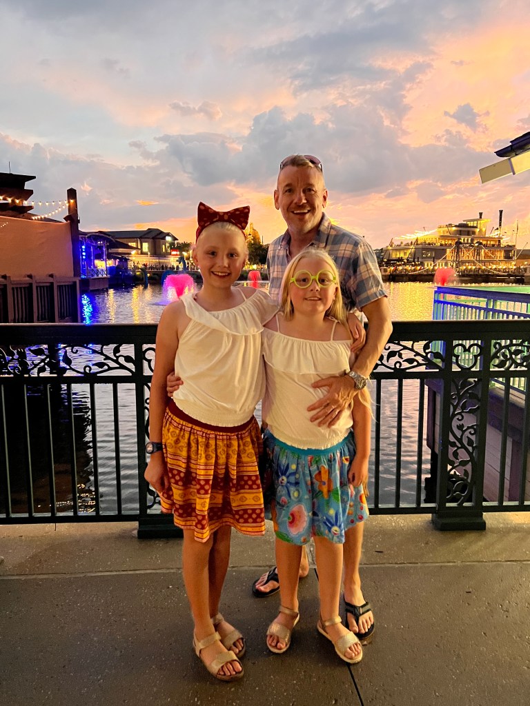 By 9.00 Steve was back (he used Mears as it was only $16, and a bus was ready and waiting) and we were packed up to head to our new hotel. We got an Uber and took our luggage with us rather than having it transferred seeing as we were planning on a resort day. We’ve never stayed here before but it’s a beautiful resort to look at. It has such a relaxing feeling, and even though it’s small, feels so spacious. I love the little streets and the fact that it feels like an actual little town. We arrived just as the pool opened, so stored our luggage and enjoyed a lovely morning in the water (complete with beignets of course!) The girls loved the waterfall (or brain crusher as they nicknamed it) and slide. Around 12.30 we were notified our room was ready. It was in block 7 which was fine, but the furthest away from the lobby/ pool, and as we were happy enough by the pool Steve went to ask if there was anything closer available. He was told that would be no problem but asked him to wait in the lobby while they got the new room number. 45 minutes later he was still in reception waiting but was told they’d email when it was ready. We grabbed some lunch and the girls joined in the pool games and conned me into paying for them to tie dye t shirts in adult sizes so they could wear them as nighties.